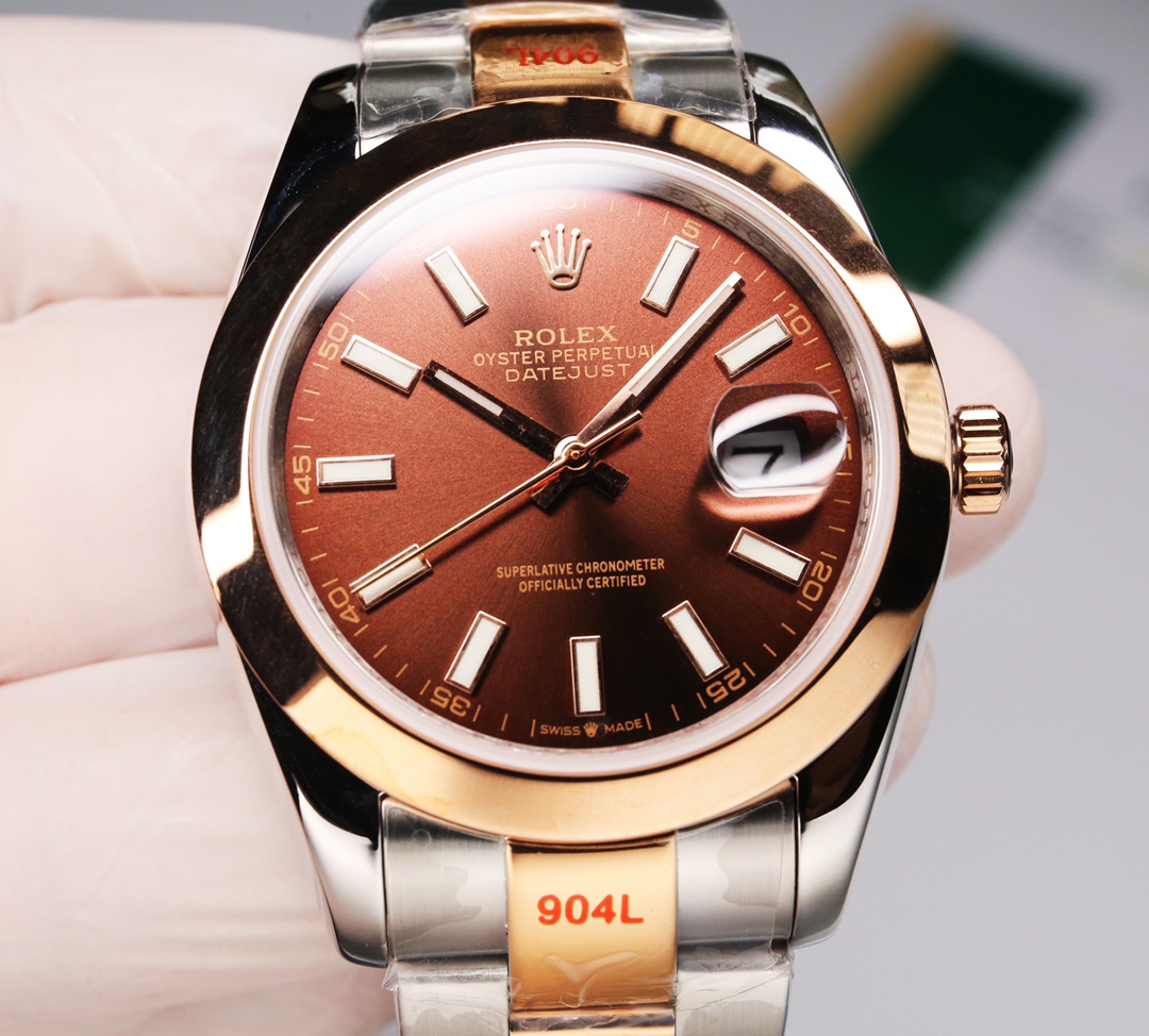 Rolex Datejust Oyster Brown Dial 41mm Rose Gold & Steel M126338