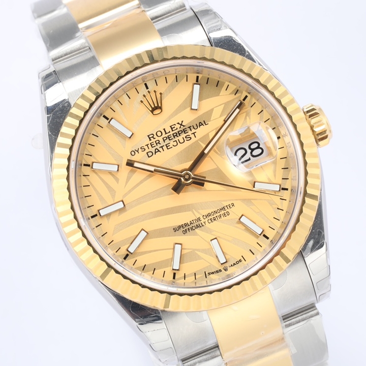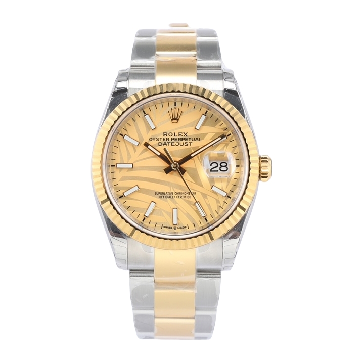 Rolex Datejust 36mm 41mm Palm Dial Gold & Steel Bezel 126233-0038