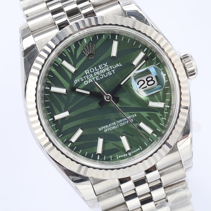 Rolex Datejust Oyster Green Palm Leaves Dial 36mm 41mm Steel Bezel 126200-0020