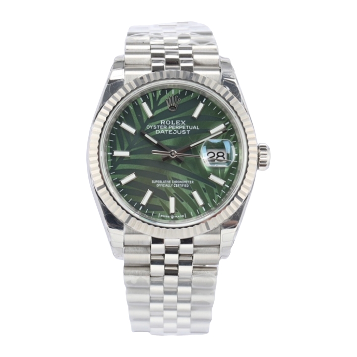 Rolex Datejust 36mm 41mm Green Palm Leaves Dial Steel Bezel 126234-0047