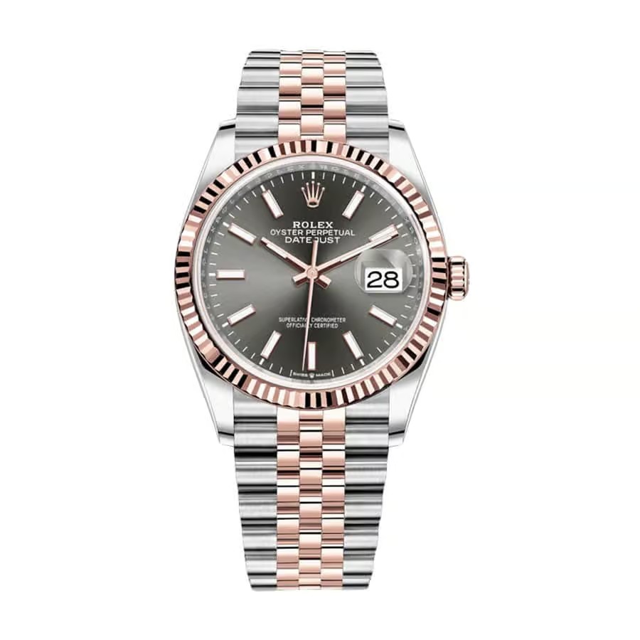 Rolex Datejust 36mm 41mm Dial Grey Rose Gold & Steel Roman Numerals 126331-0015