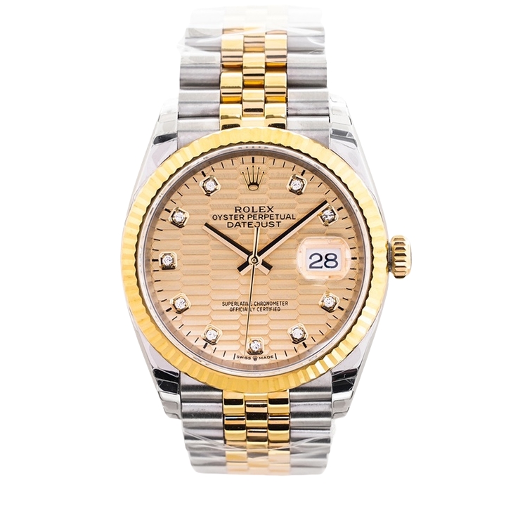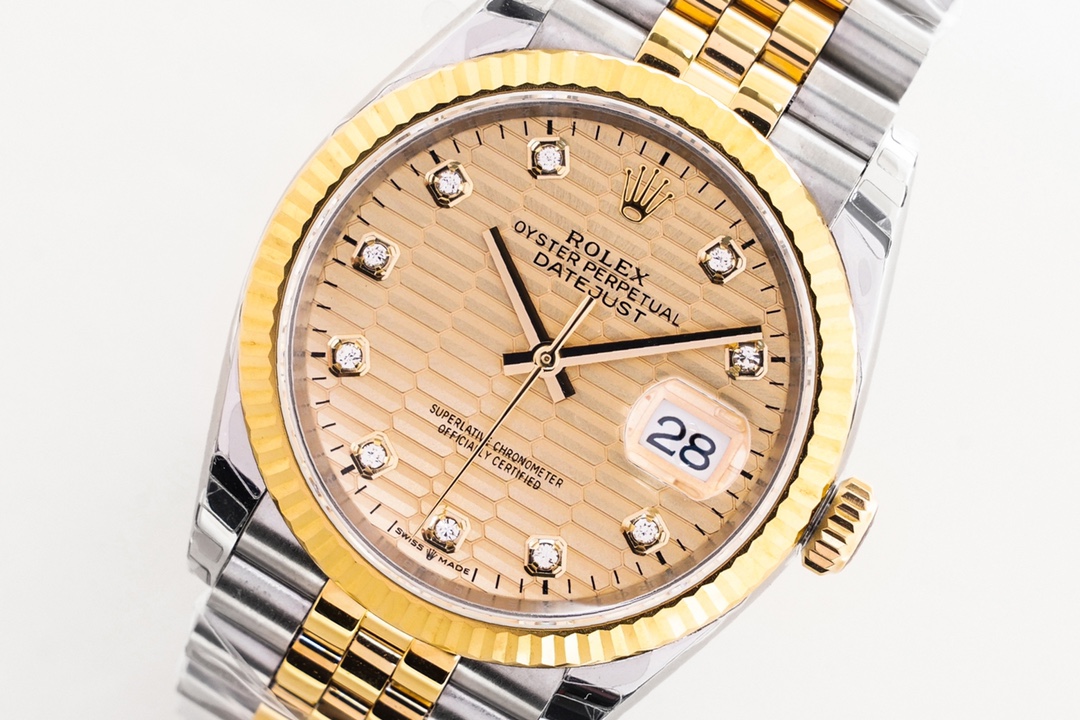 Rolex Datejust 36mm Water Ripples Diamond Yellow Dial Yellow Gold & Steel Bezel 126233-0045