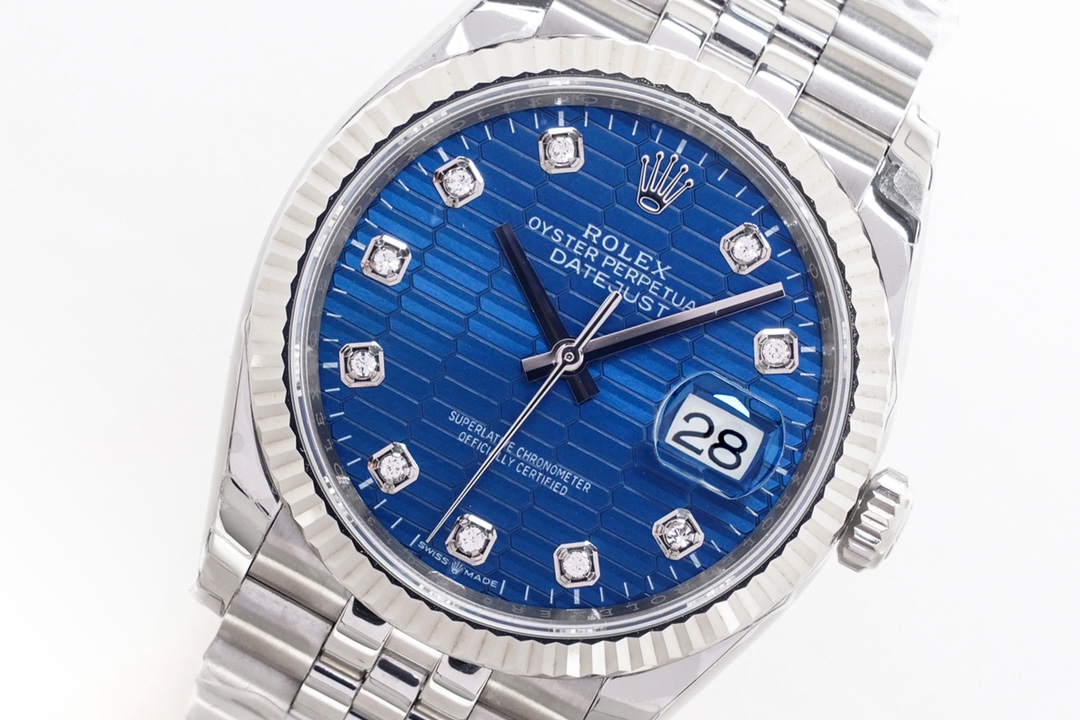 Rolex Datejust 36mm Water Ripples Blue Diamond Dial Steel Bezel 126234-0057