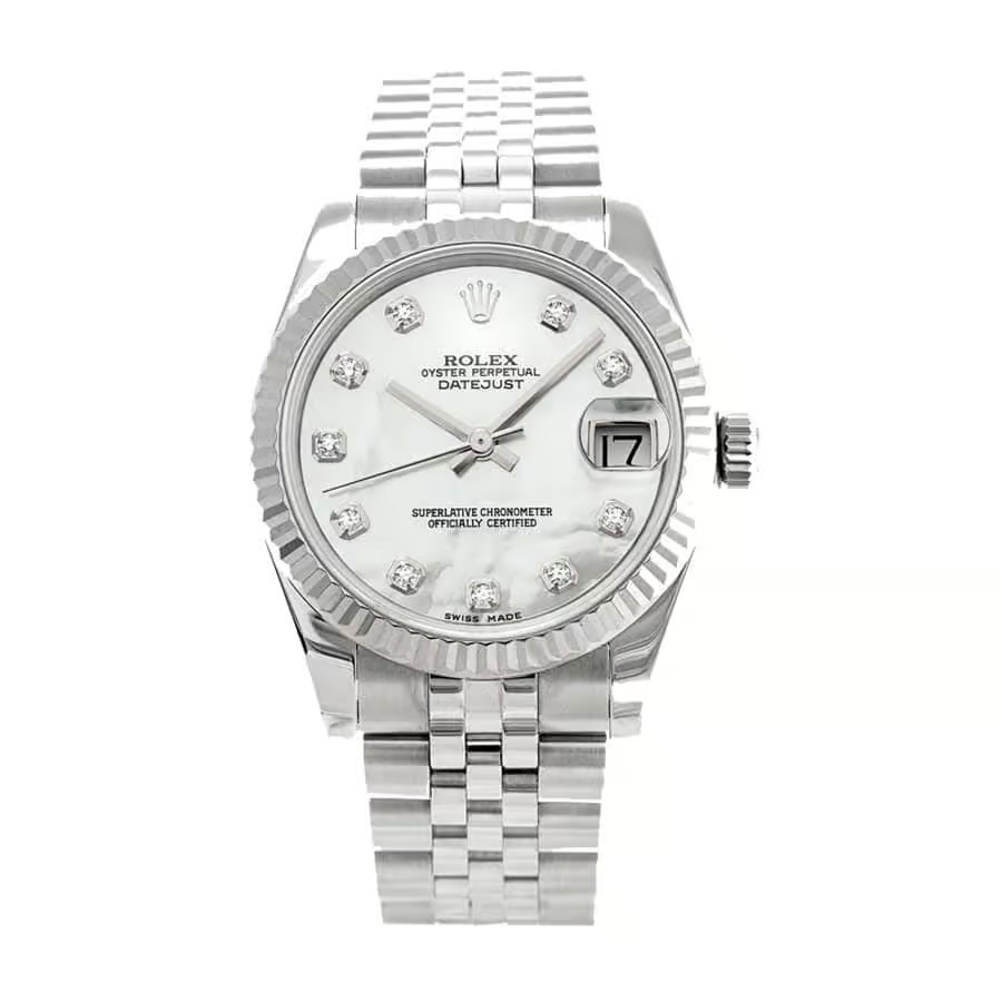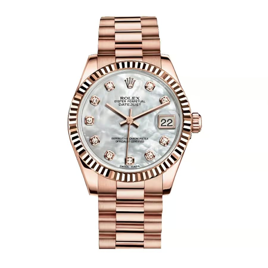 Rolex Datejust 31mm White Pearl Oyster Dial Diamond Rose Gold 178275-0016 Woman Ladies