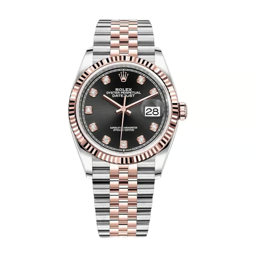Rolex Datejust 36mm Black Dial Diamond Rose Gold & Steel 126231-0020