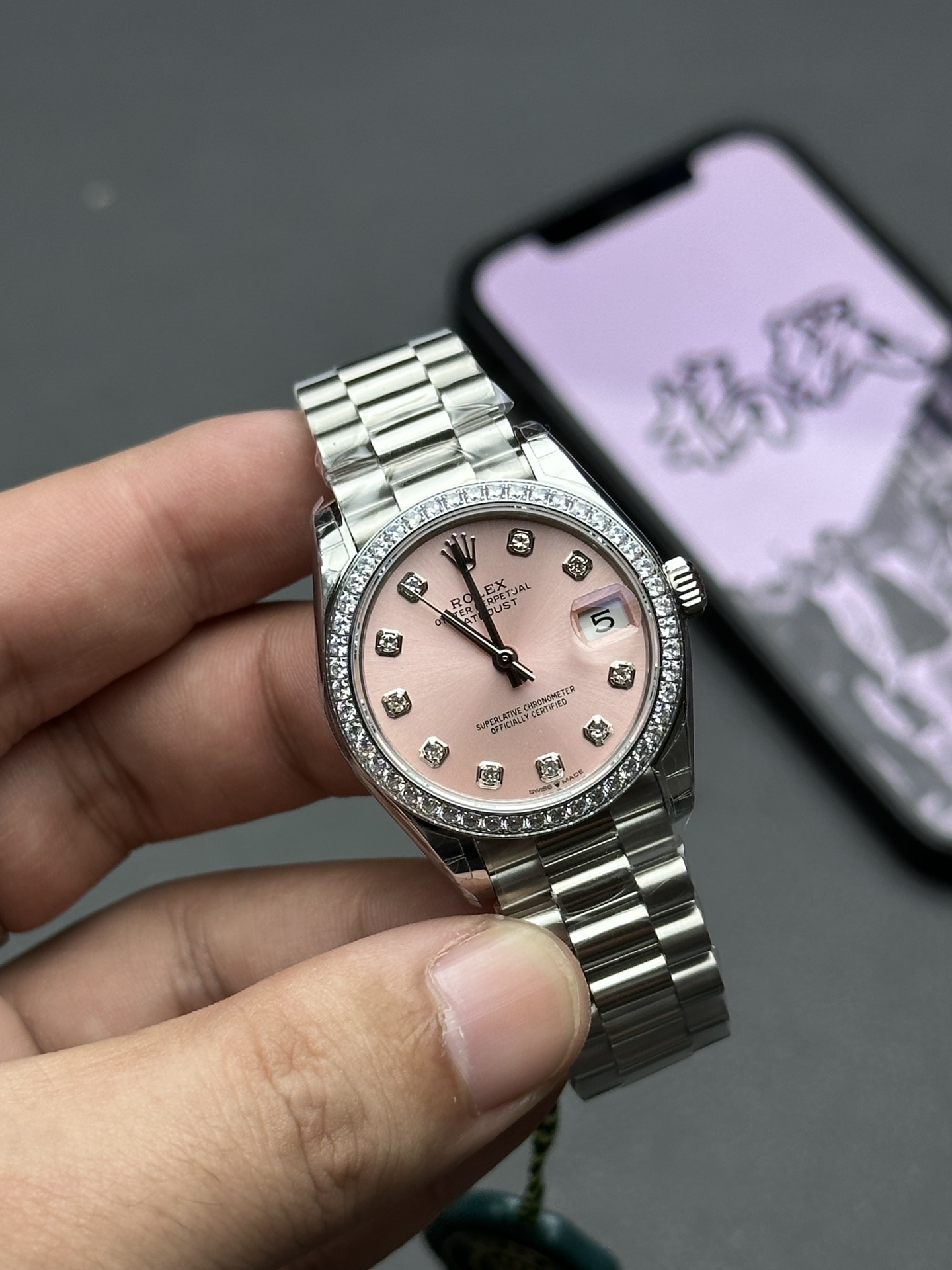 Rolex Datejust 36mm Pink Water Ripples Diamond Dial Rose Gold & Steel Bezel 126231-0039