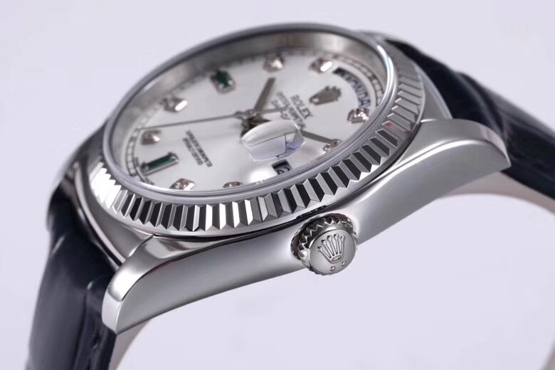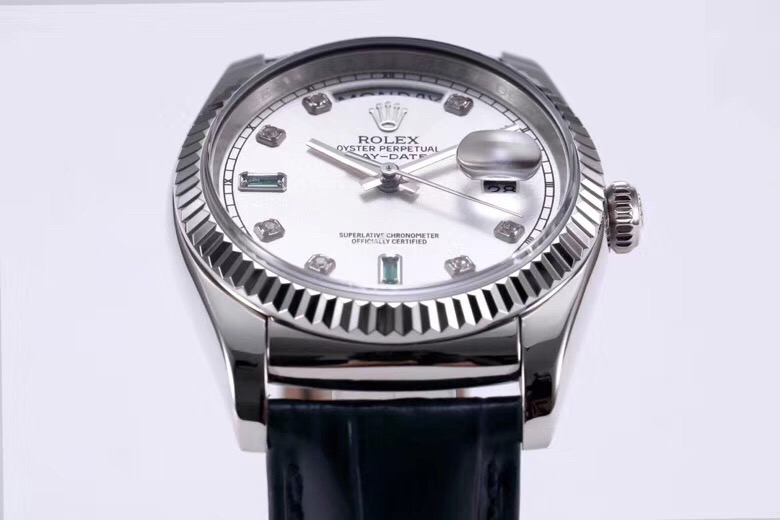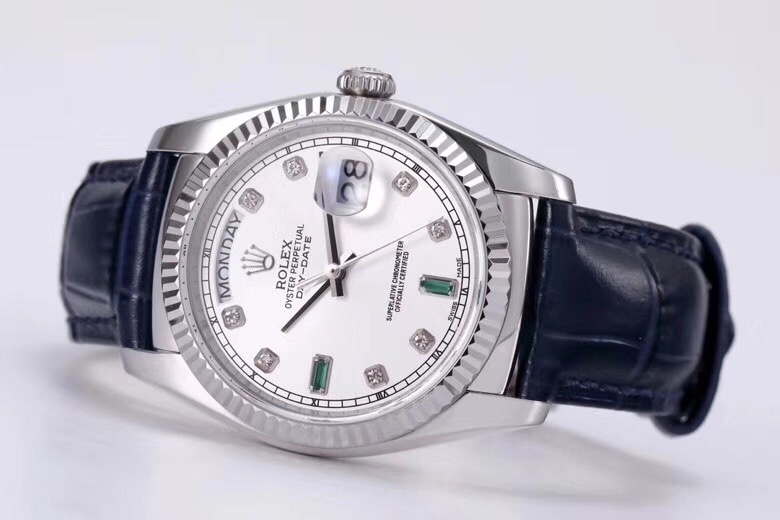 | Rolex Day-Date 36mm 40mm Dial Diamond Blue White Gold Blue Leather 118139 | |
