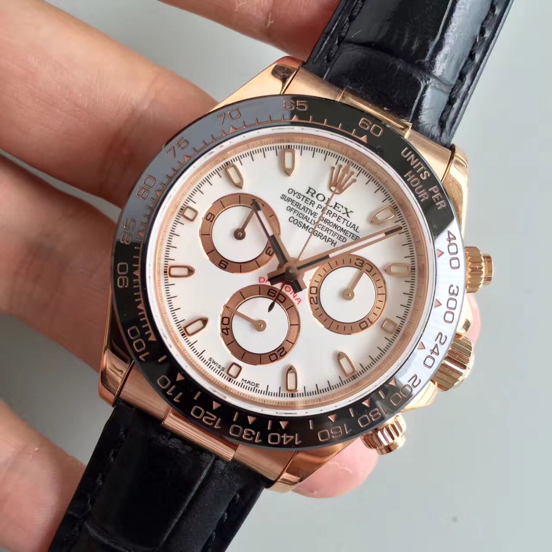 | Rolex Daytona 40mm Dial Ivory White Rose Gold Black Leather 116515LN-0003 | |