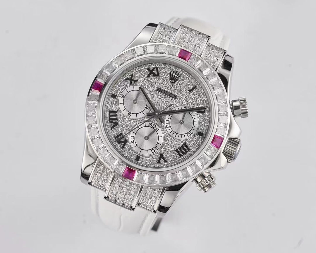 • Rolex Daytona Cosmograph 40mm Dial Full Diamond Gen Platinum White Leather 116599-4RU