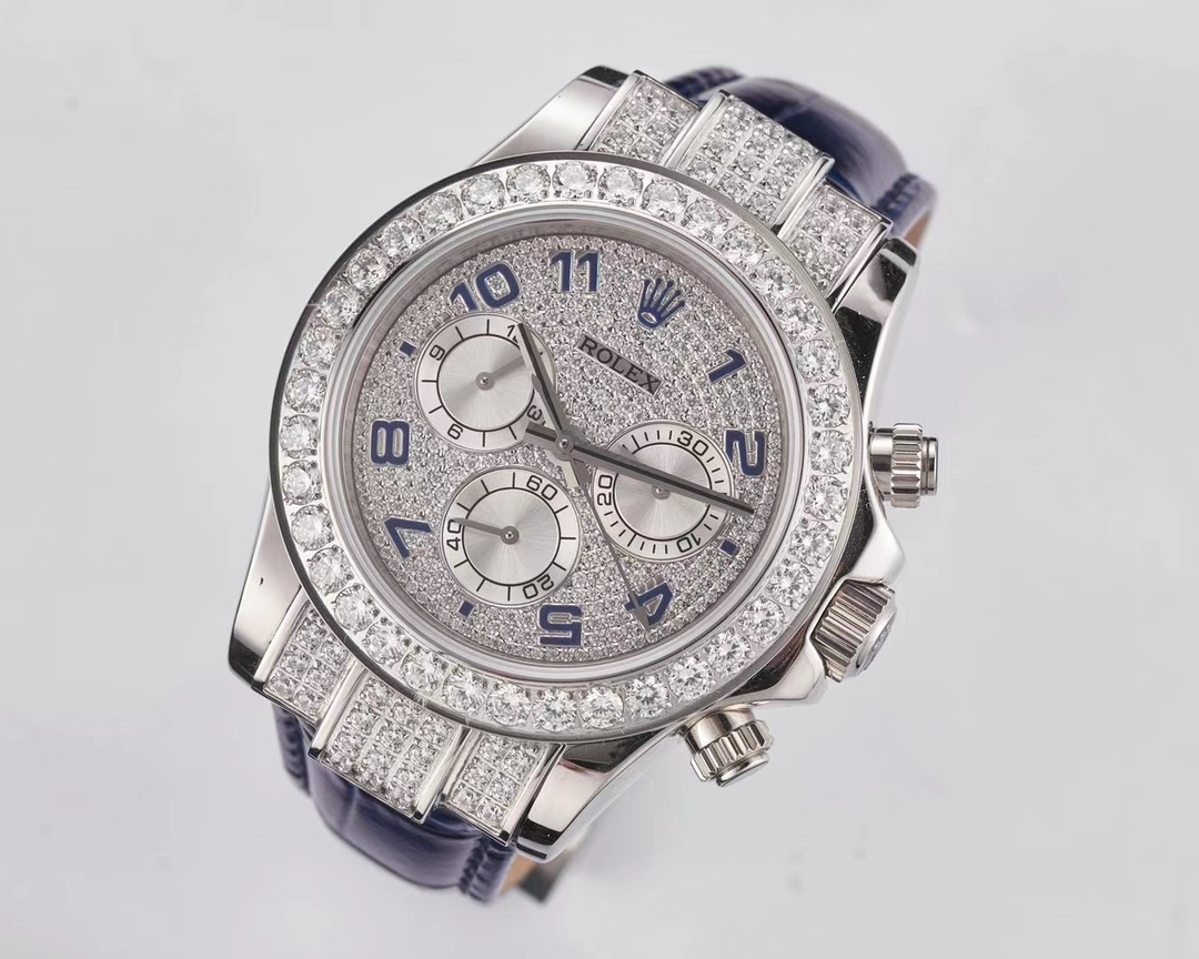 • Rolex Daytona Cosmograph 40mm Dial Full Diamond Platinum Blue Leather 116599RBR