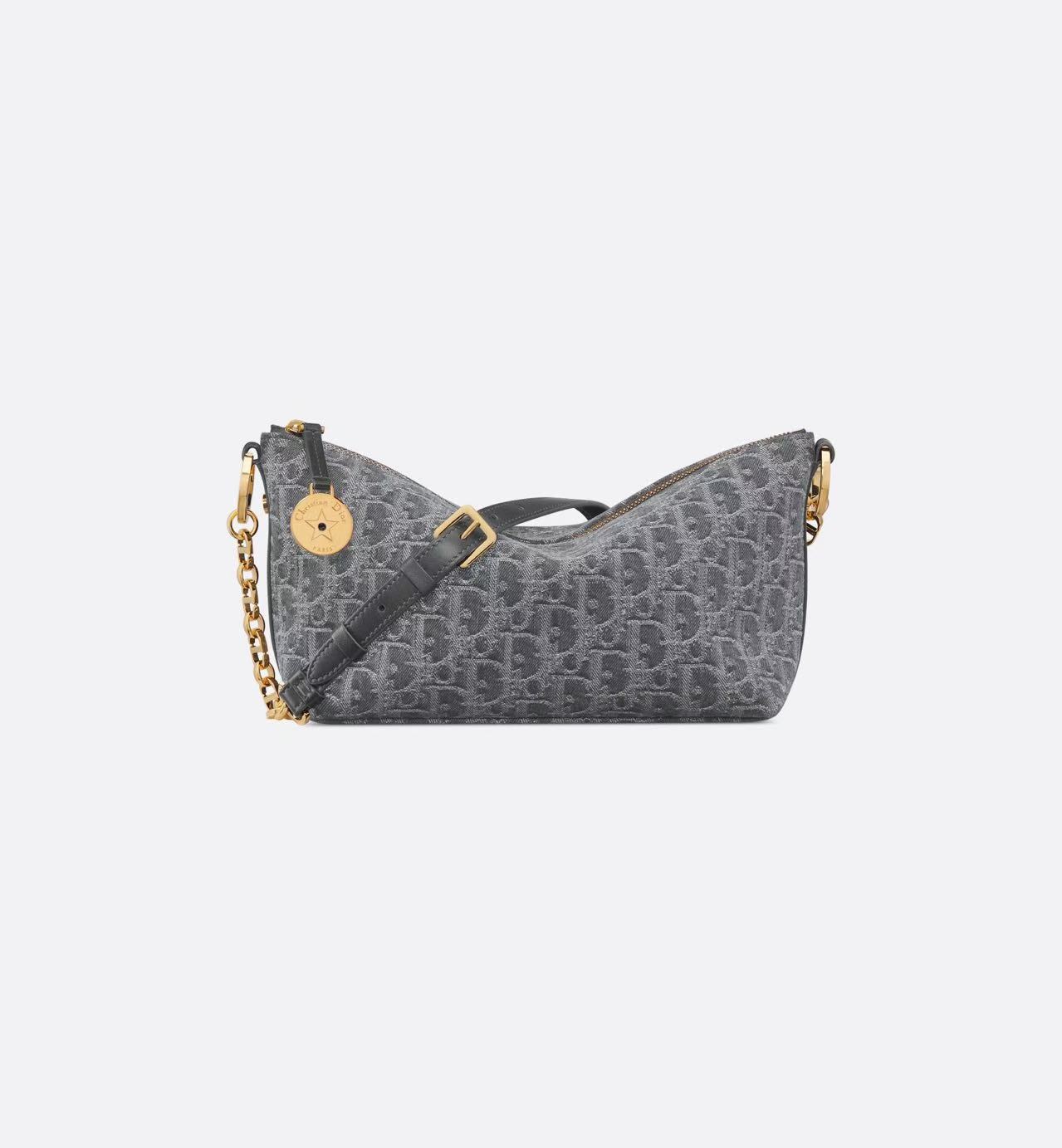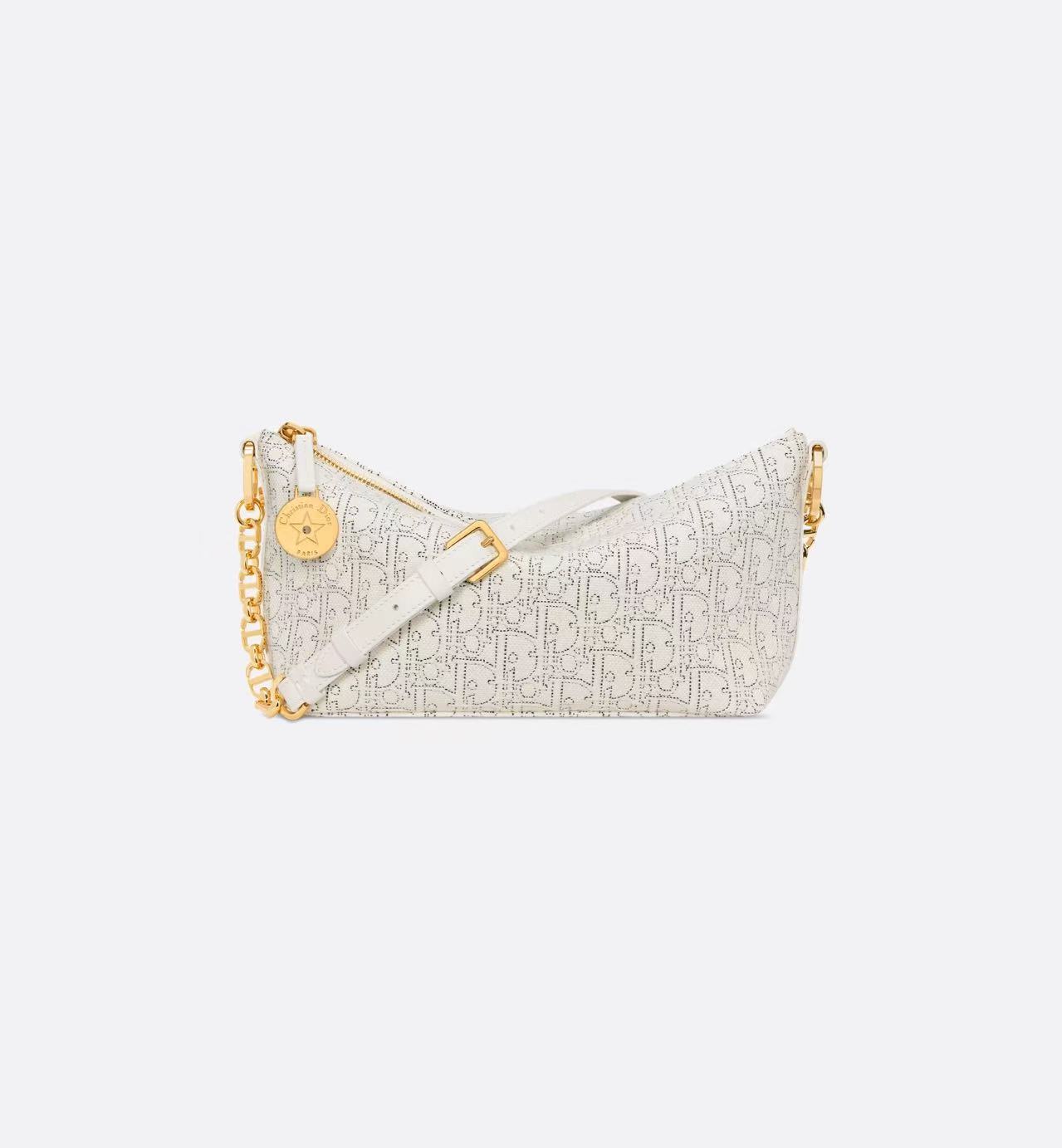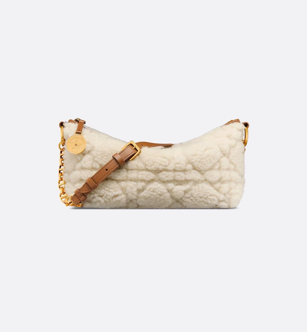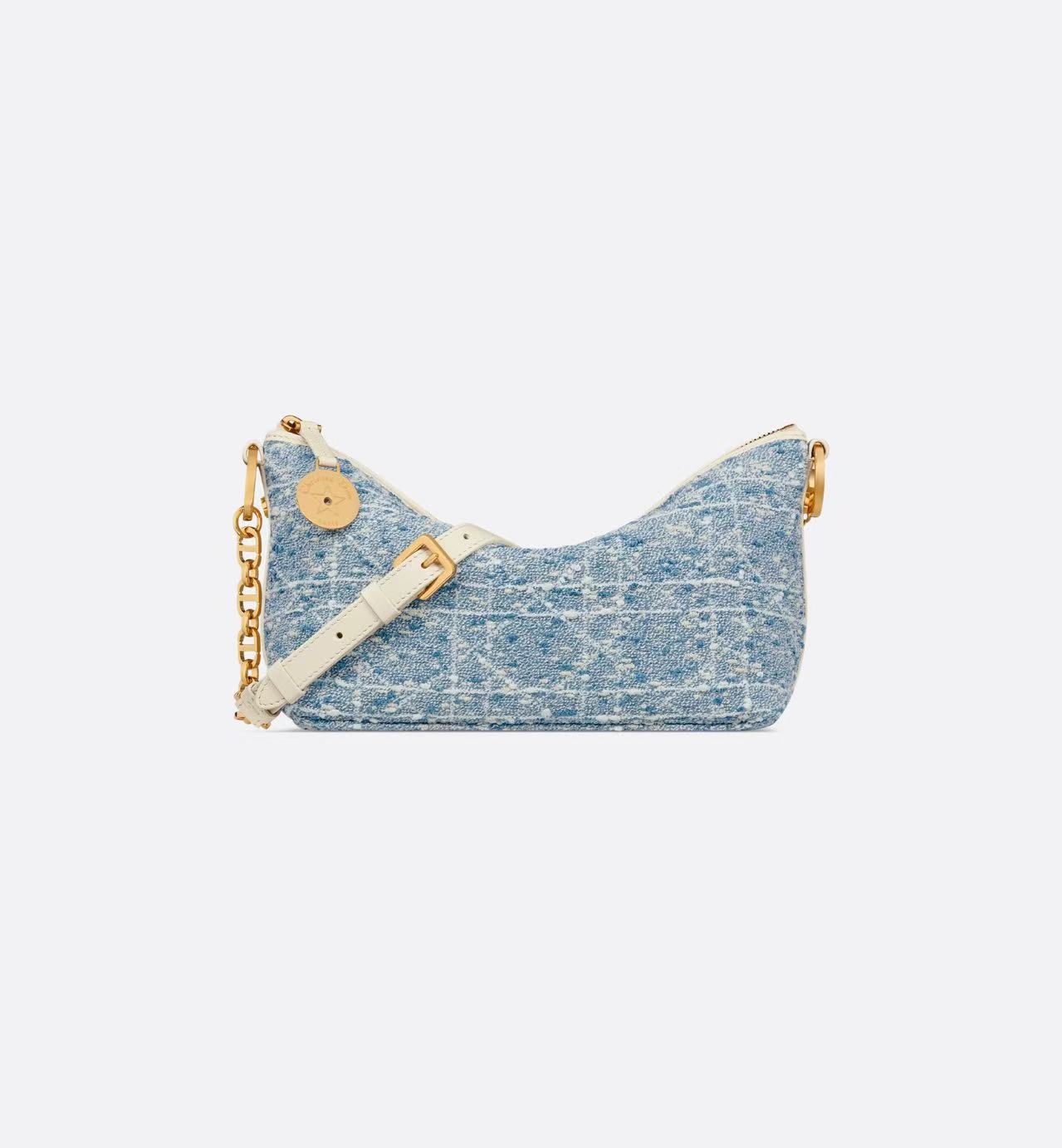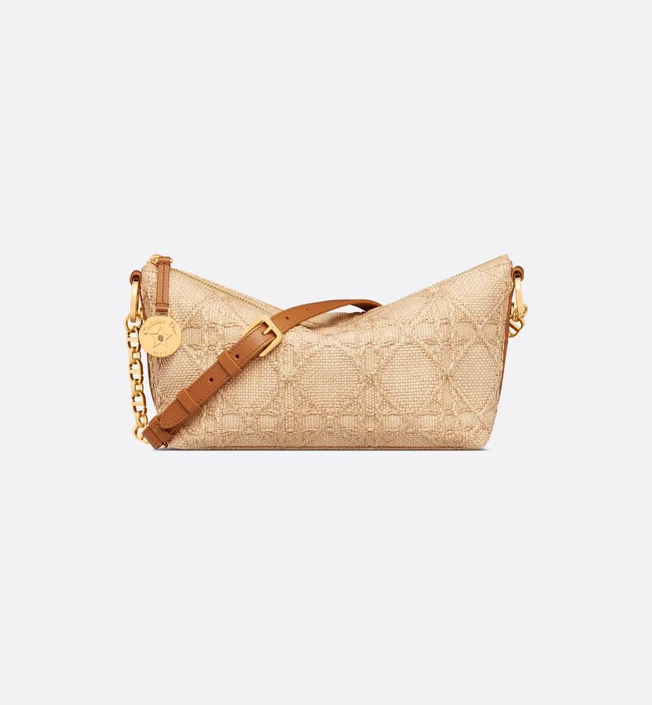 Blue raffia-effect oblique print and light biscuit-colored smooth calfskin leather
