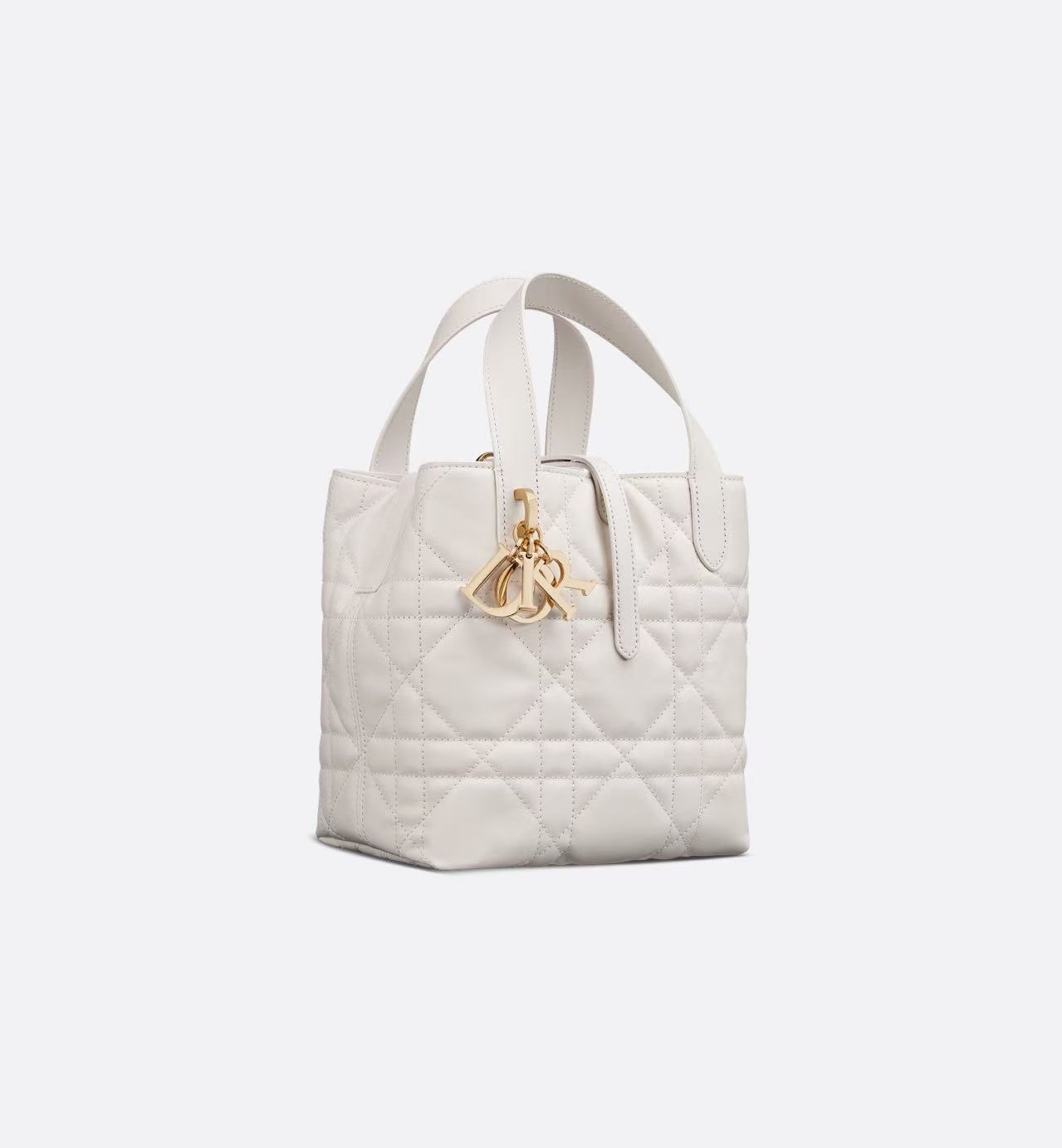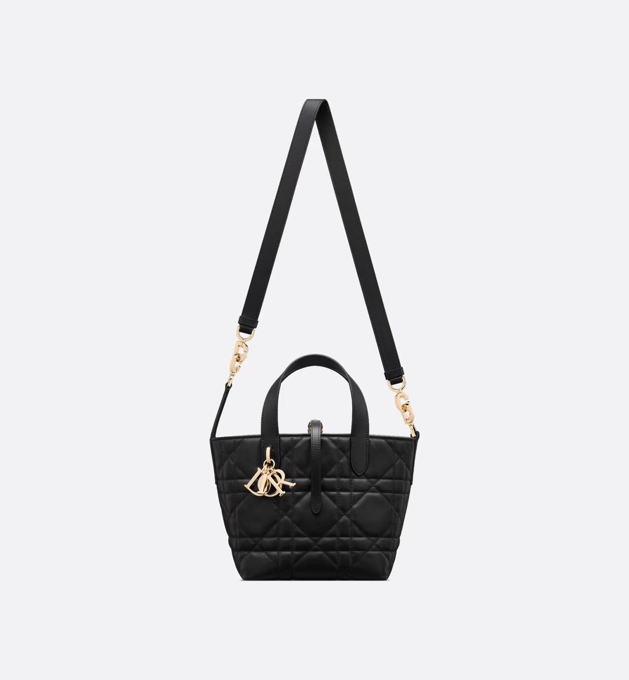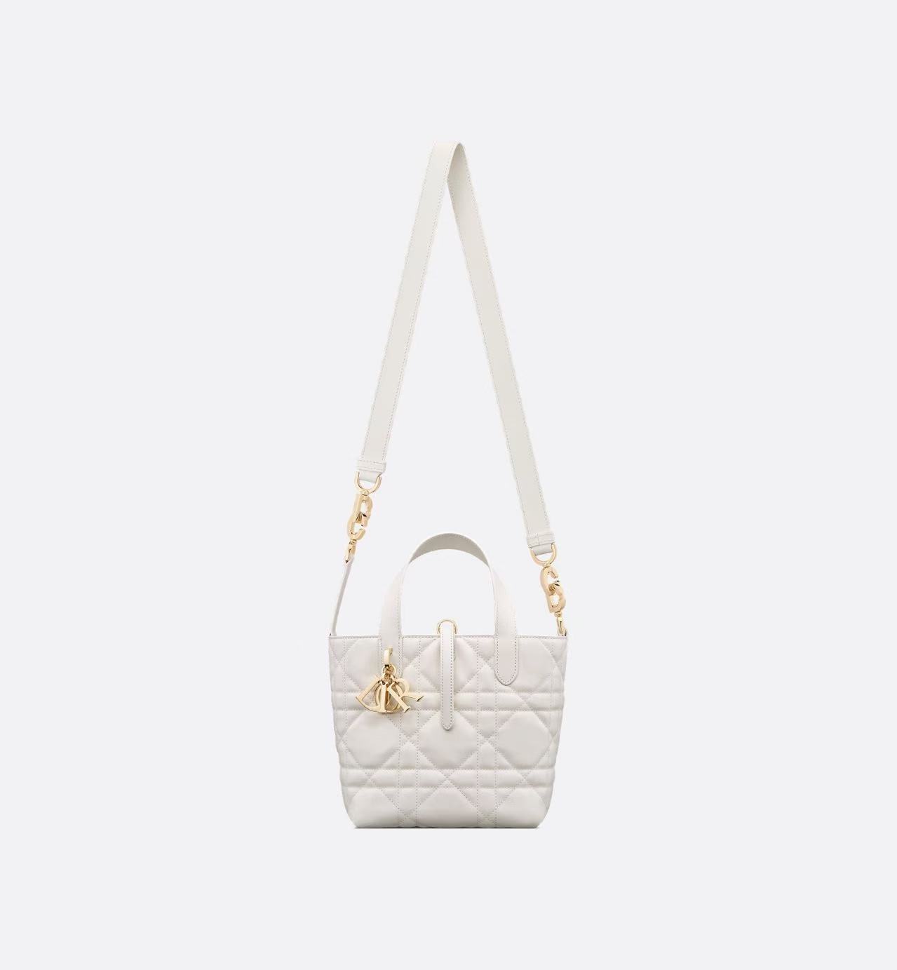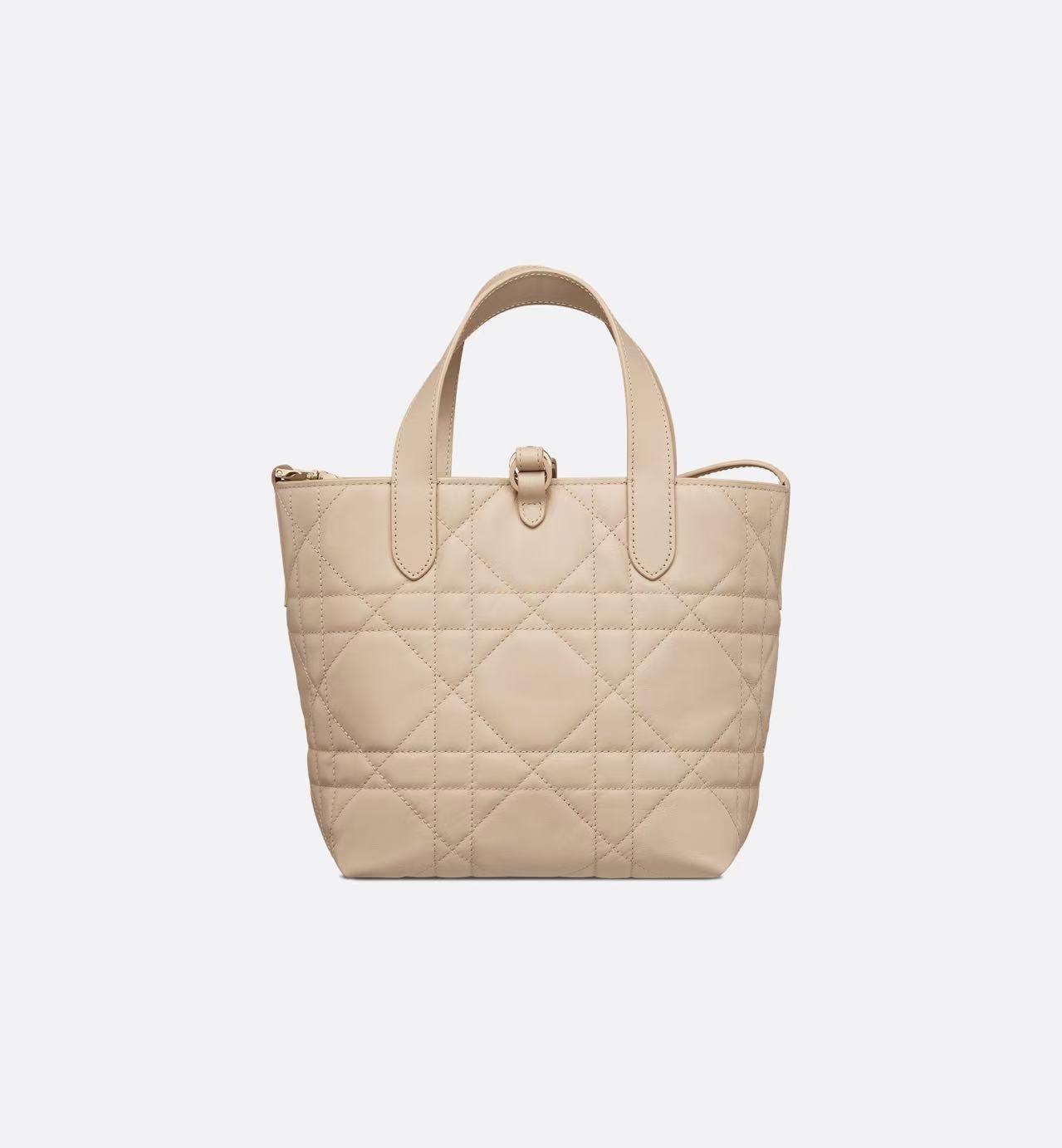 This vertical Dior Toujours bag is stylish and practical, offering a unique touch. Crafted from desert taupe cowhide leather with oversized cannage stitching, it features spacious interior compartments for everyday essentials. It features a slim leather tie closure for secure storage, and a CD Lock D knob-style clasp that adjusts the sides for added style. This small model features a top leather handle with a detachable leather shoulder strap for hand, shoulder, or crossbody wear.