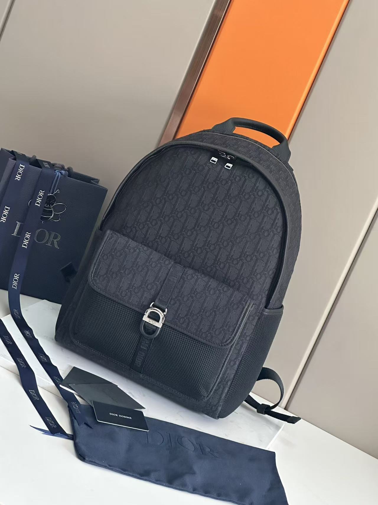 Dior 8 Backpack for Men Model: 93383 Black Cloth Blue Cloth