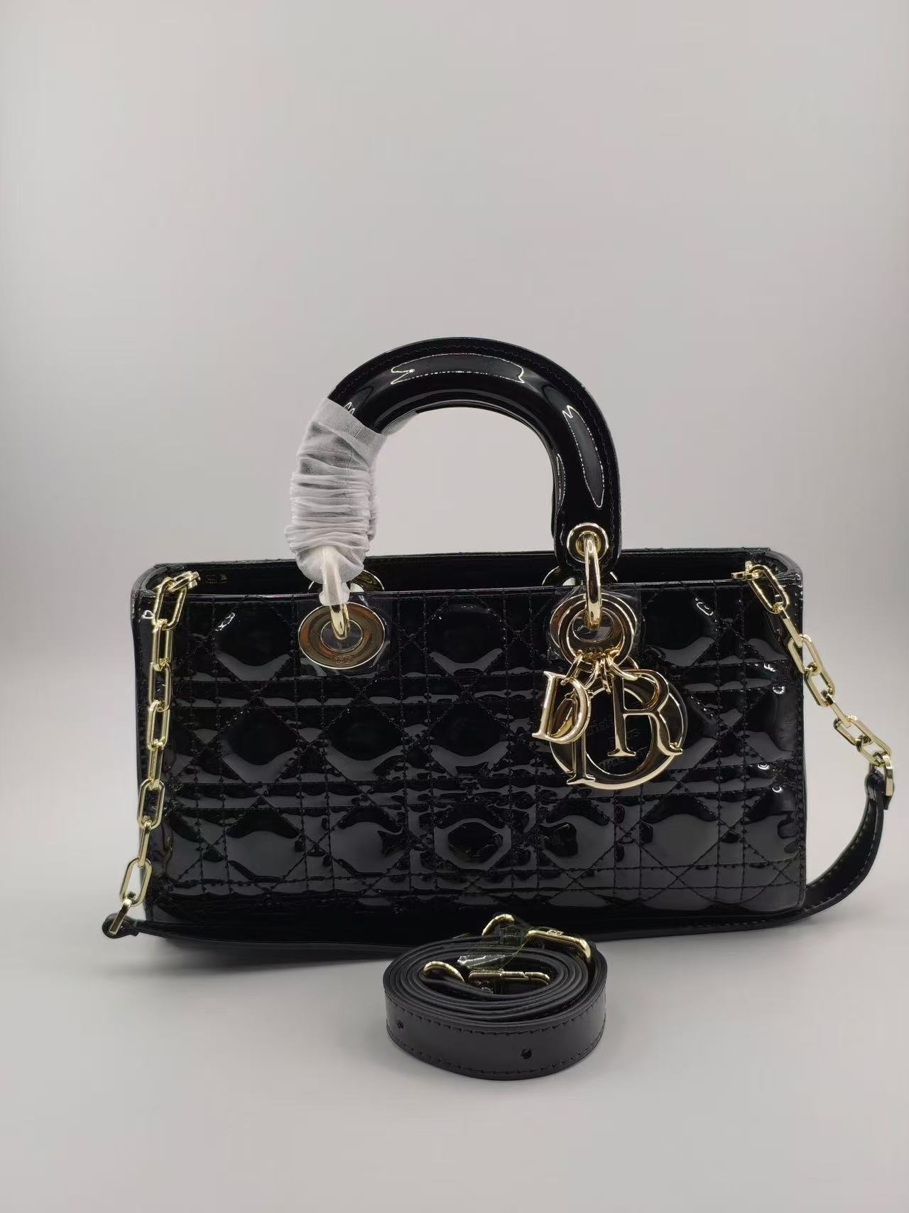 The Lady Dior Horizontal Five-Pattern Bag in Patent Leather is a masterpiece embodying the spirit of Dior Haute Couture. Lined with lambskin, this meticulously handcrafted cowhide bag features Dior's signature Cannage stitching. It can be carried by hand or on the shoulder, embodying timeless elegance.