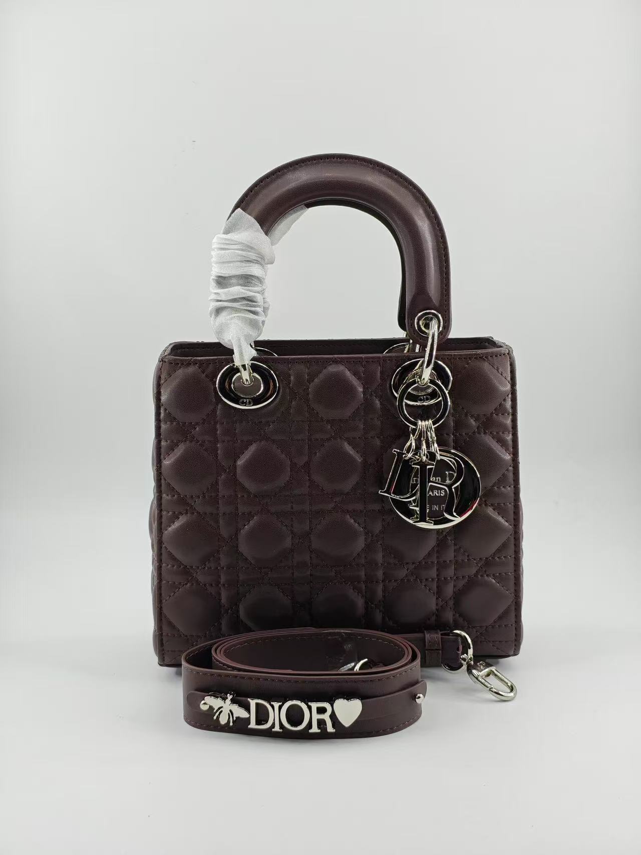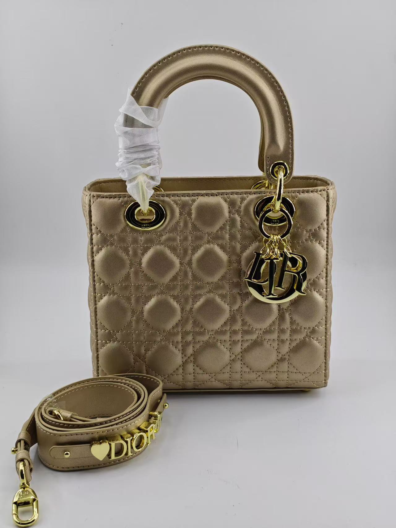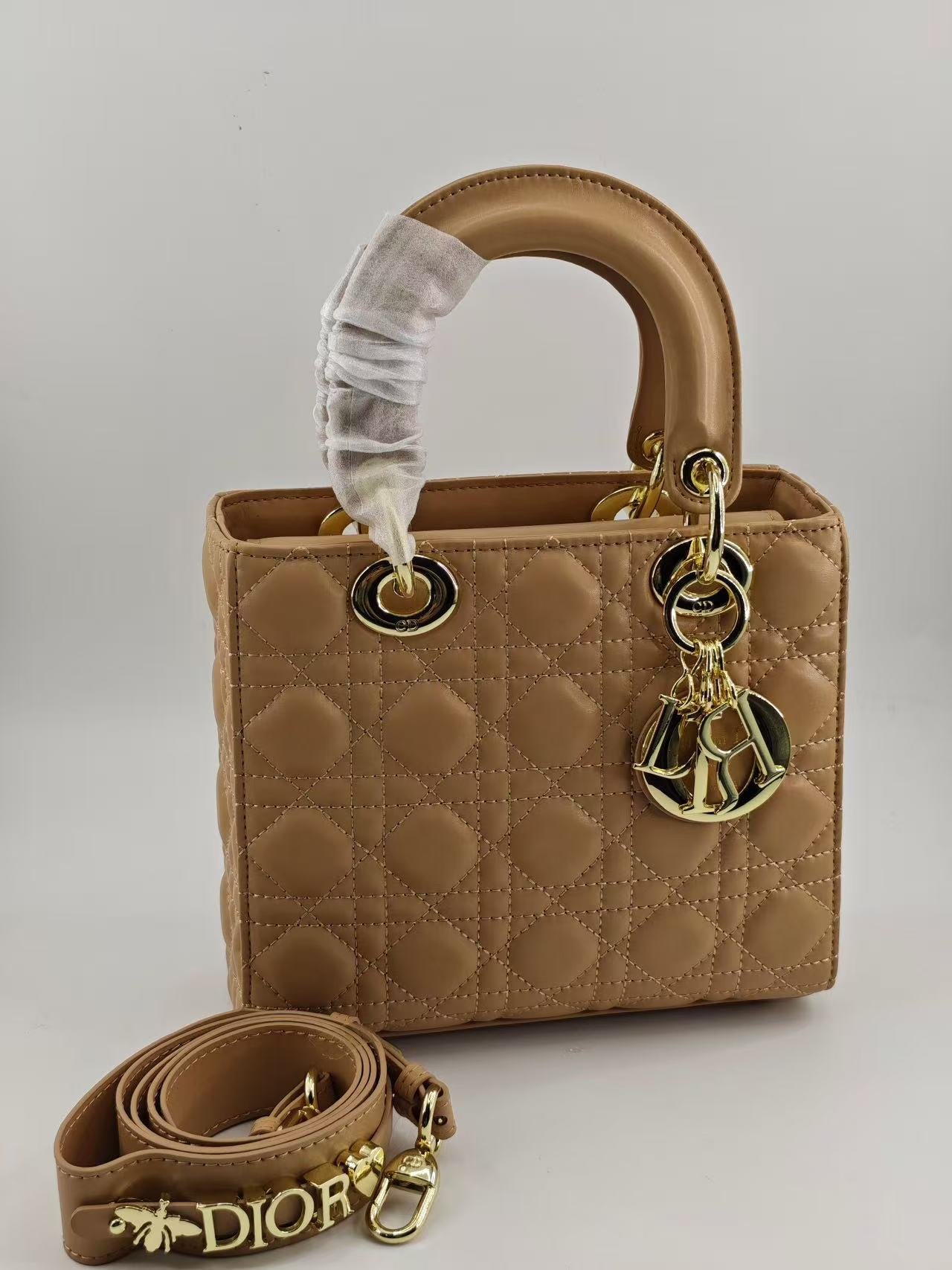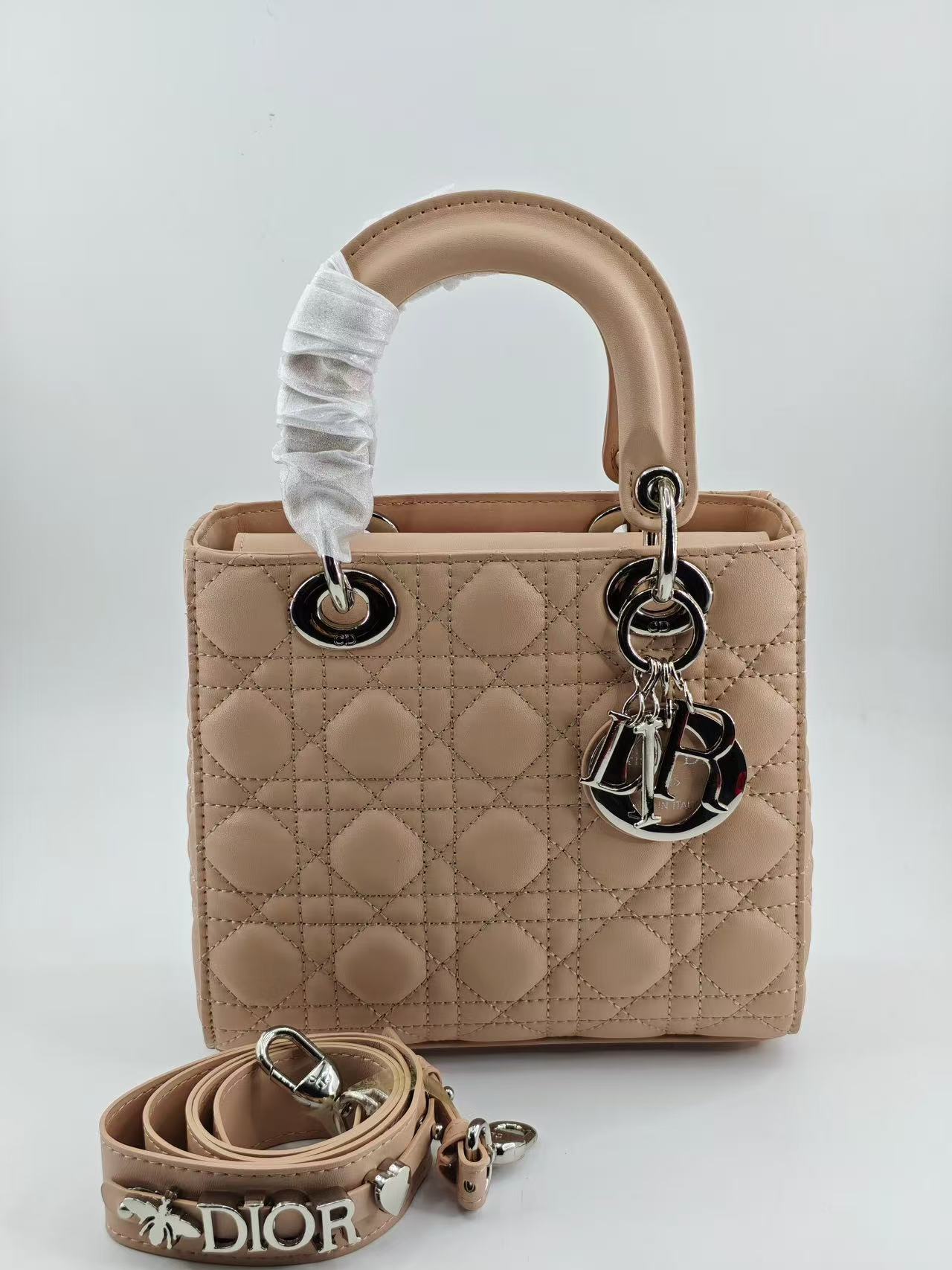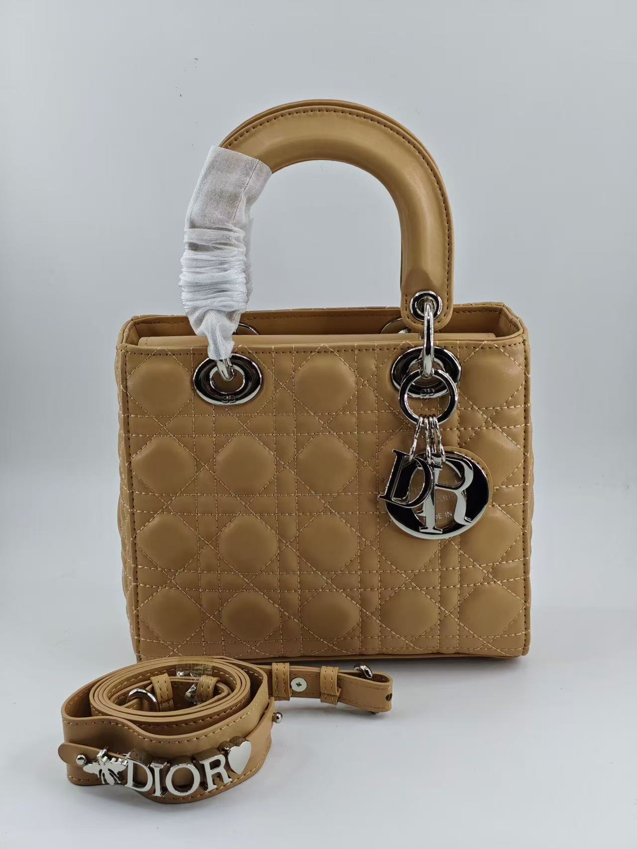 The Lady Dior — My ABCDior handbag epitomizes Dior's profound vision of elegance and beauty. Combining refined elegance with a chic, modern flair, it's a timeless classic. Expertly crafted from leather, it features striking quilting details with cannage stitching, showcasing the meticulous craftsmanship. The signature "D.I.O.R." charm in light gold metal adds a touch of movement to the refined silhouette. A tonal badge can be added to the shoulder strap for personalization.