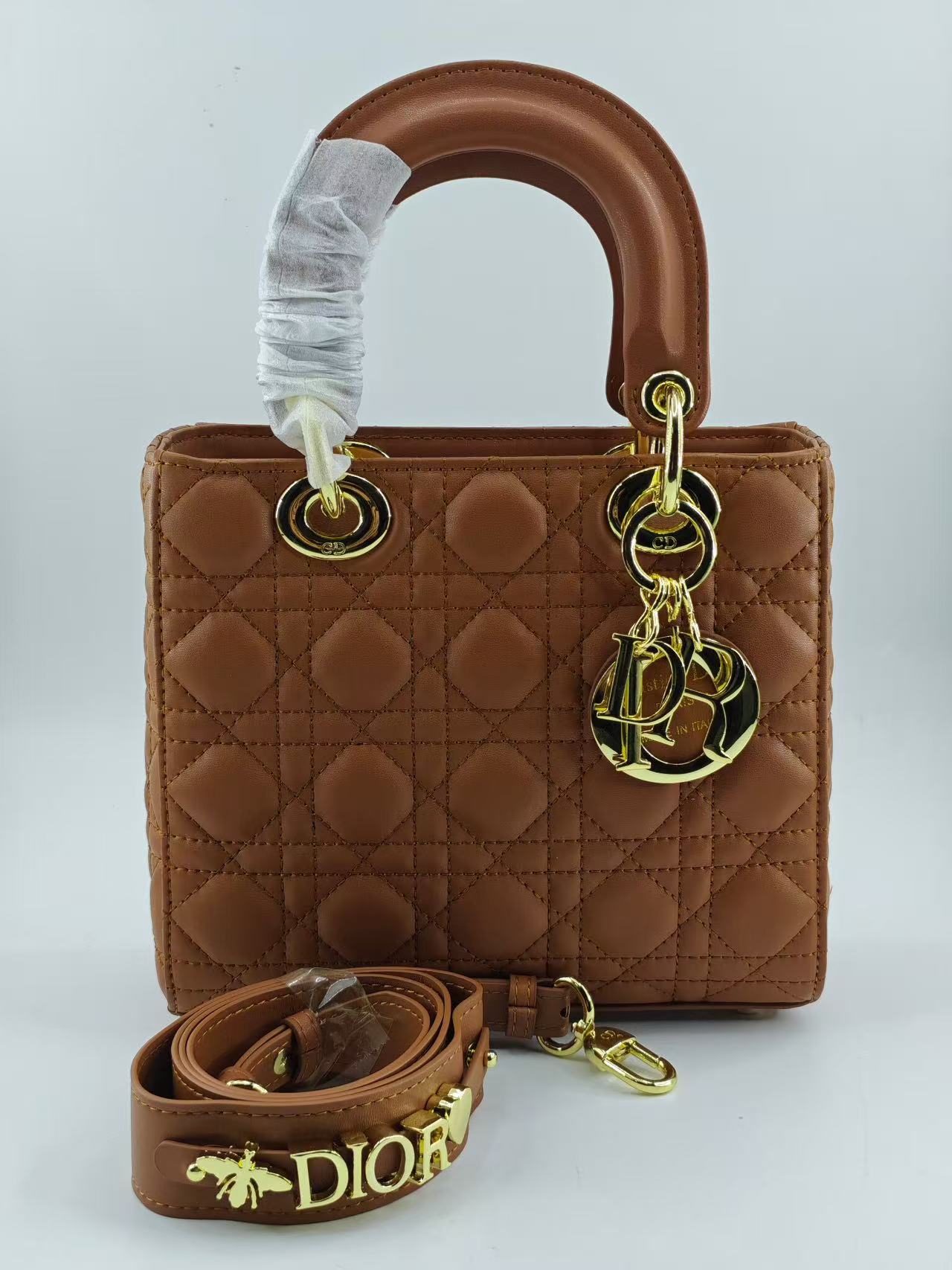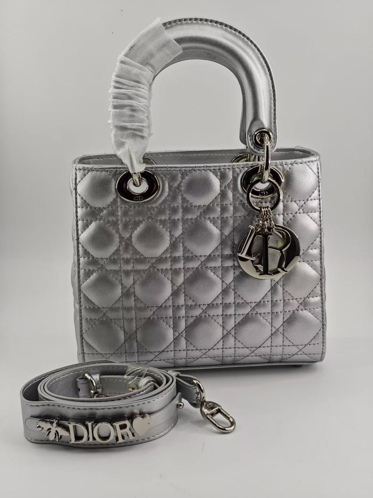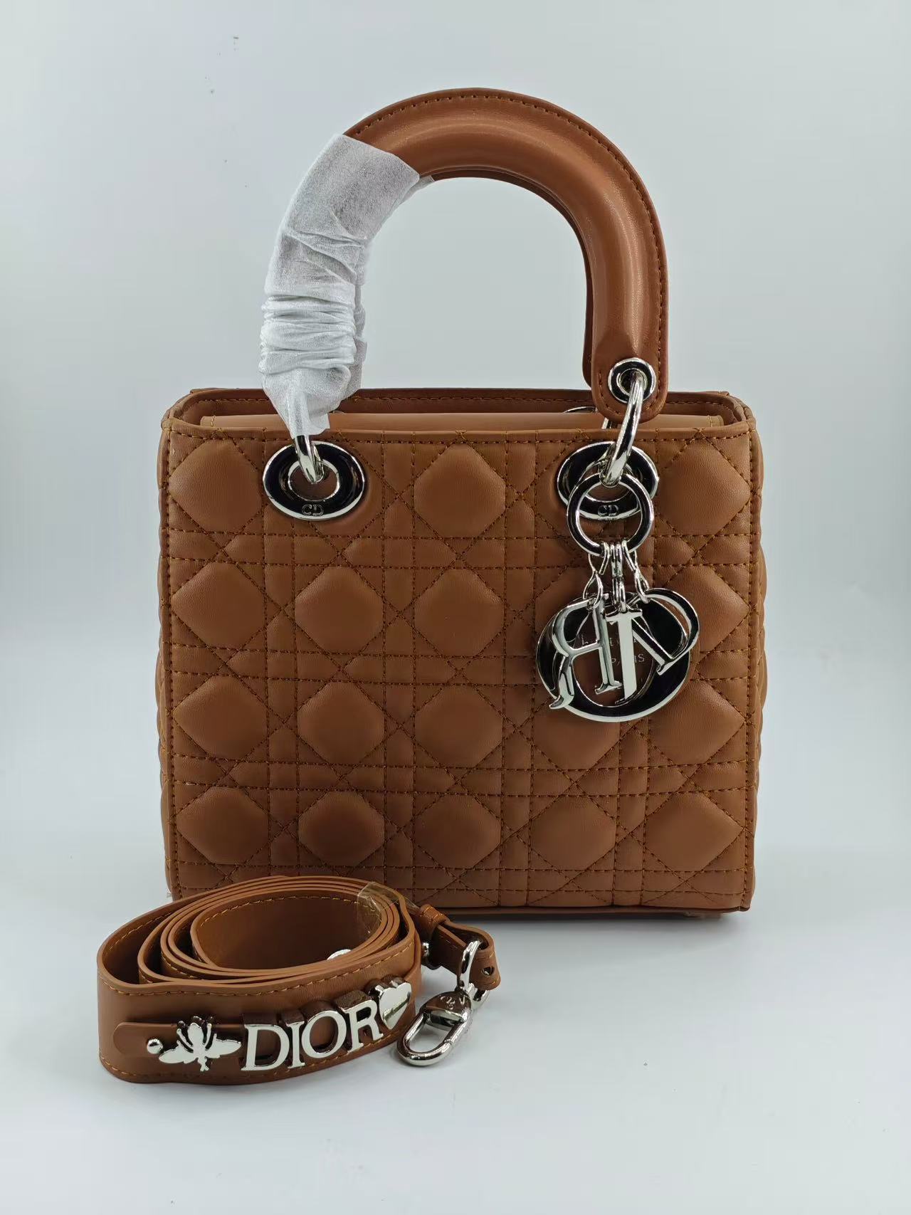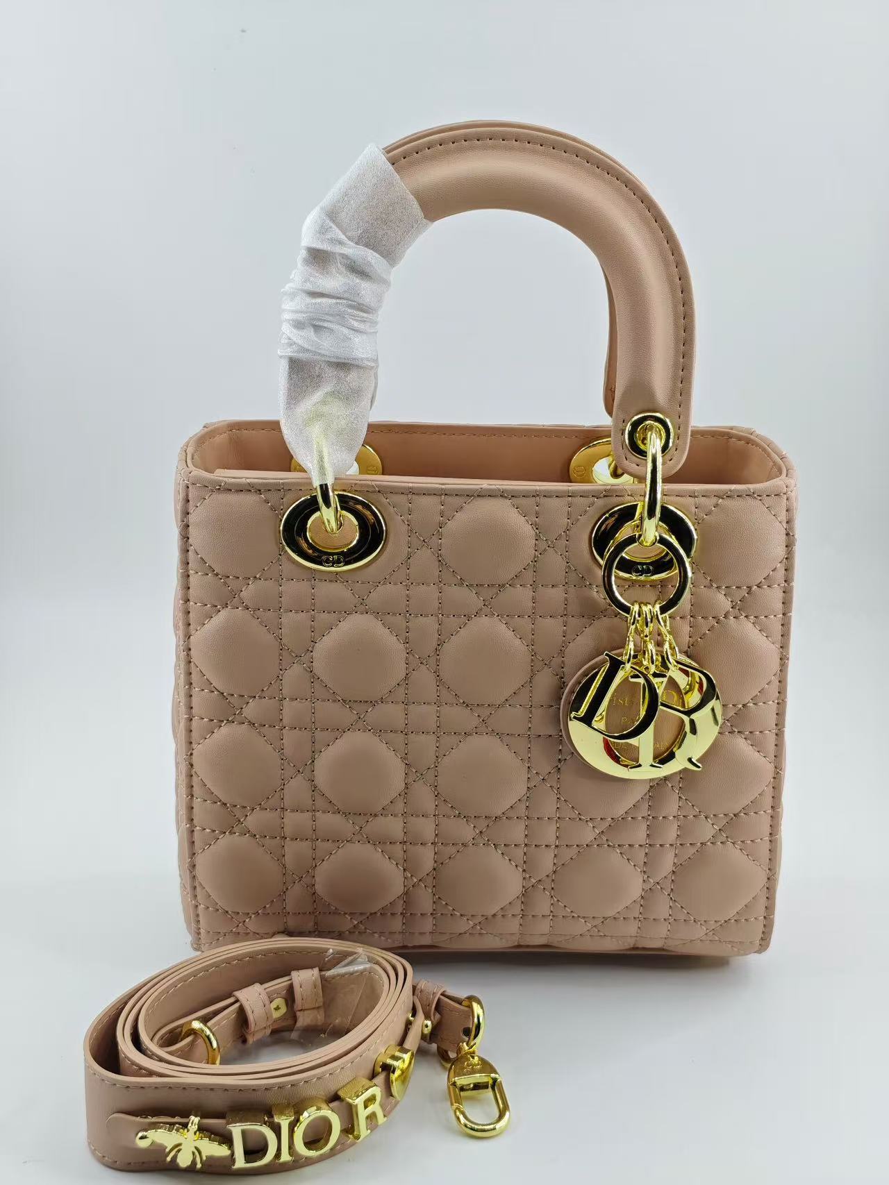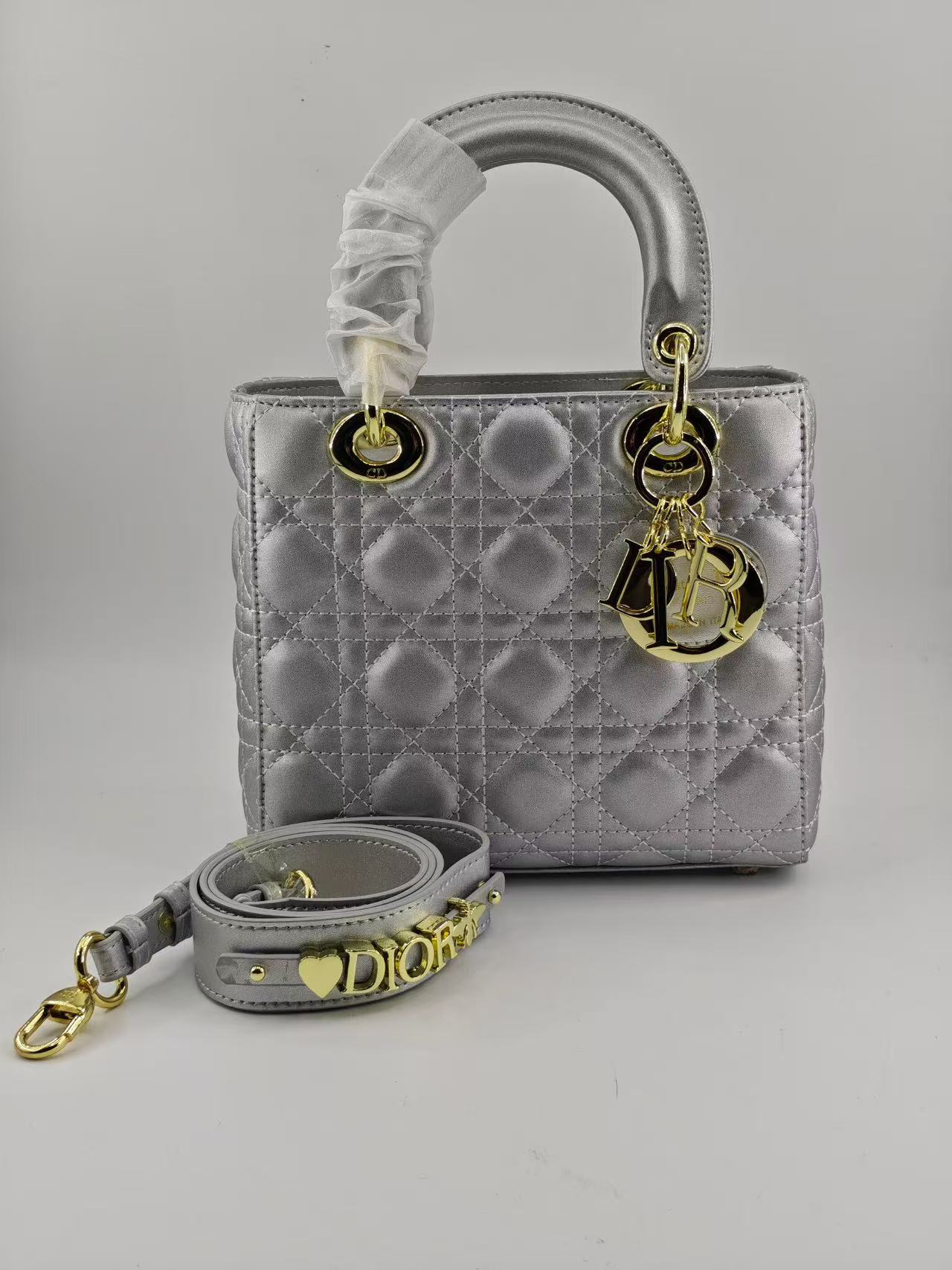 The Lady Dior — My ABCDior handbag epitomizes Dior's profound vision of elegance and beauty. Combining refined elegance with a chic, modern flair, it's a timeless classic. Expertly crafted from leather, it features striking quilting details with cannage stitching, showcasing the meticulous craftsmanship. The signature "D.I.O.R." charm in light gold metal adds a touch of movement to the refined silhouette. A tonal badge can be added to the shoulder strap for personalization.