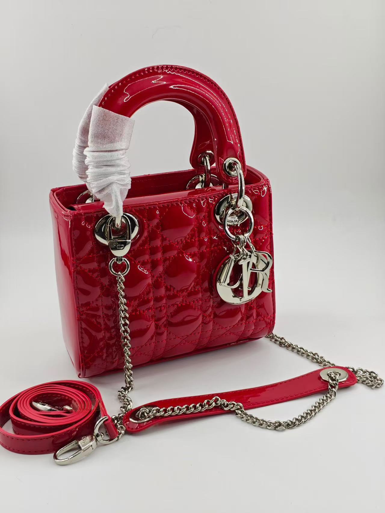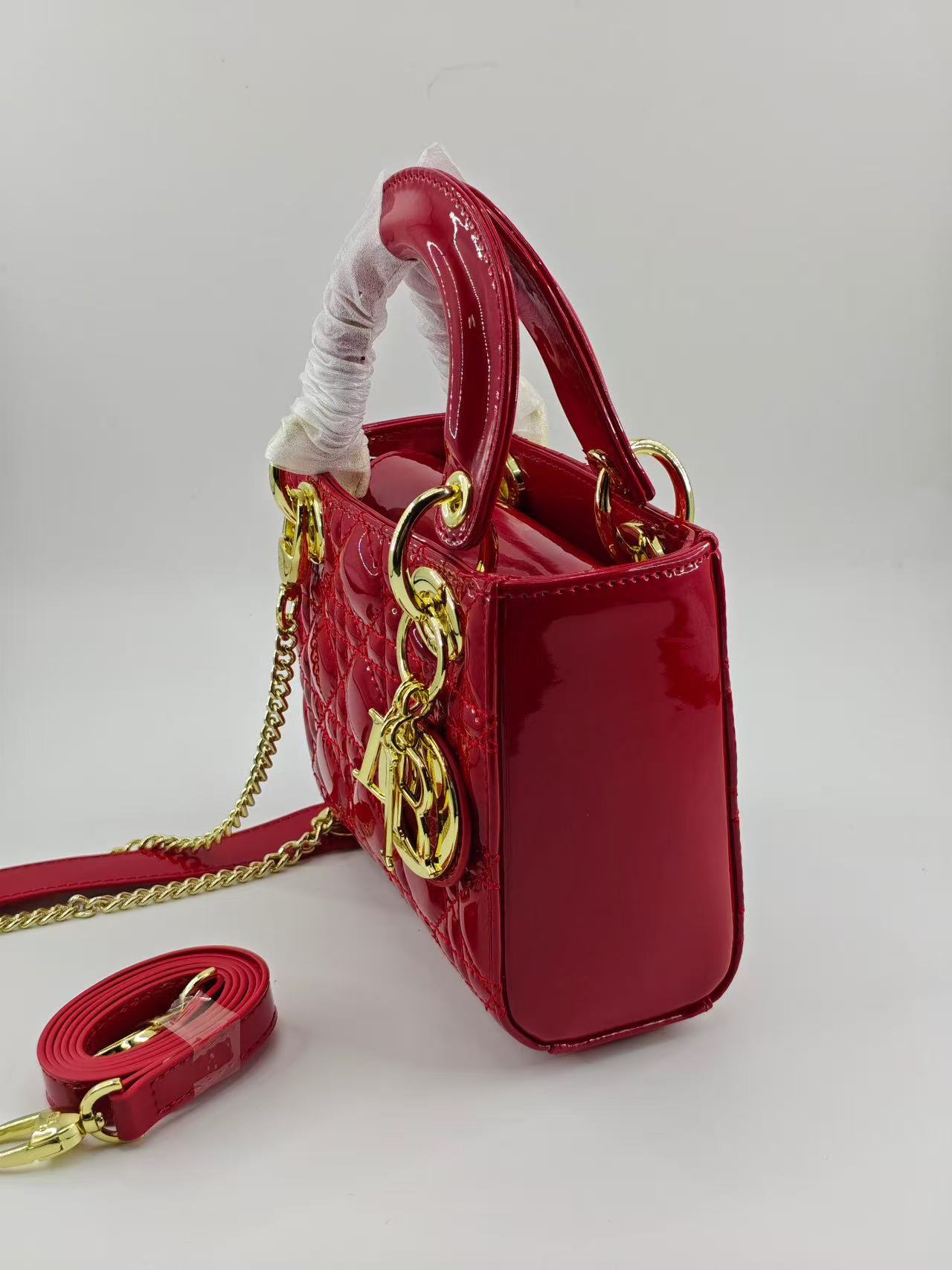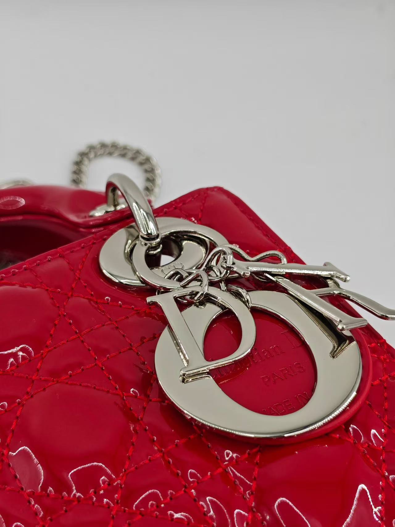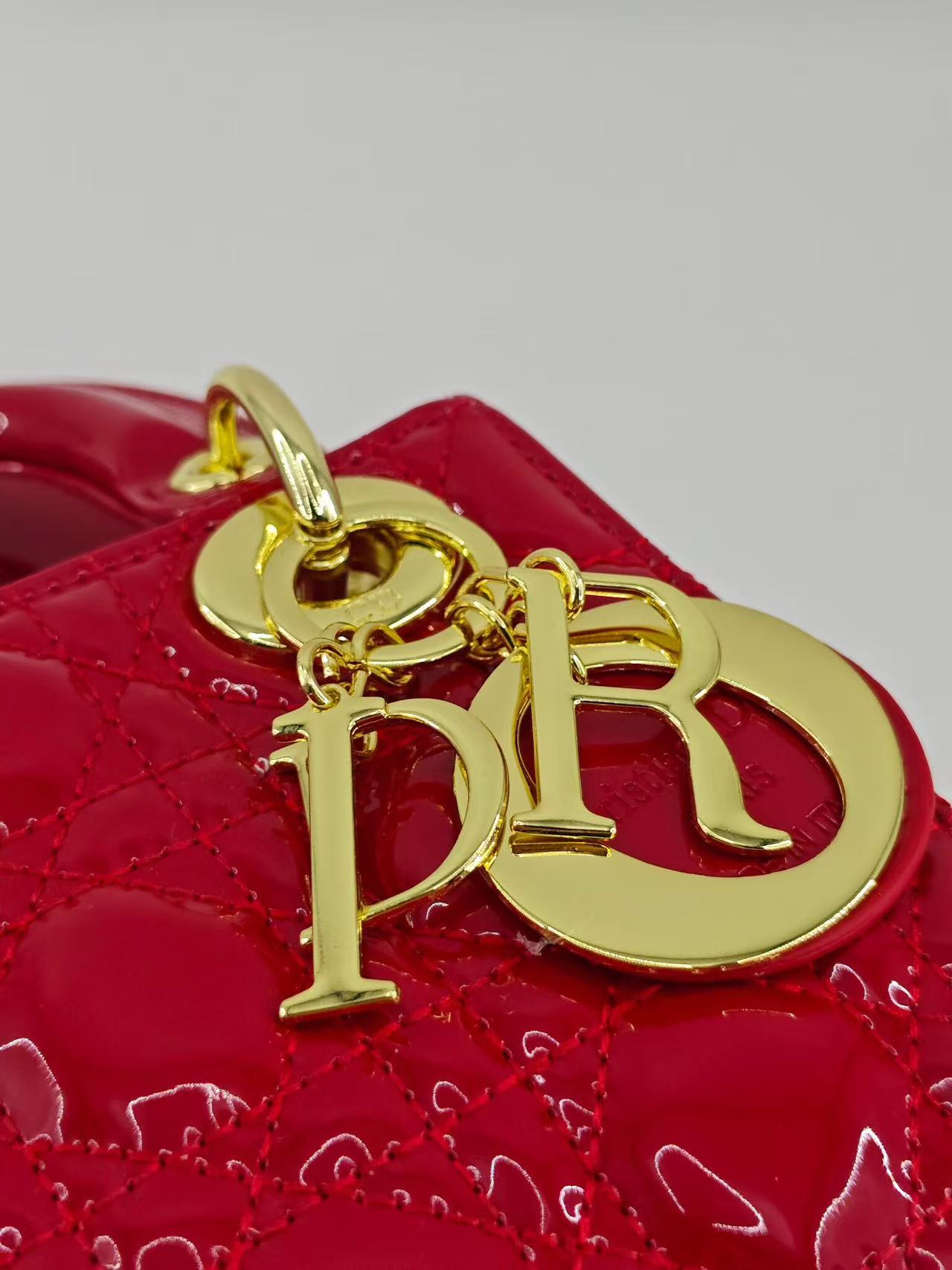 Dior Lady Dior — My ABCDior Lady Dior Handbag, 3 compartments, bright red patent leather, gold charm, light gold charm