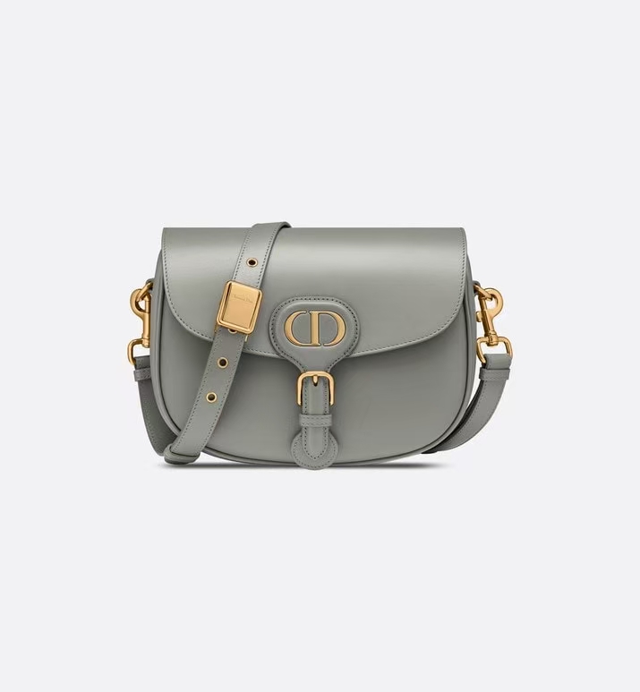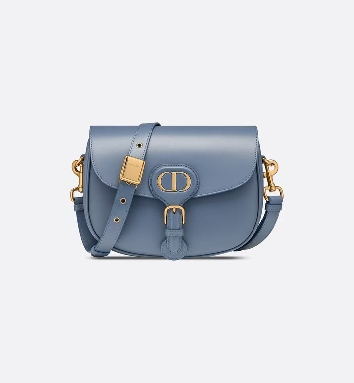 Black grained calfskin leather with a blue Oblique print shoulder strap