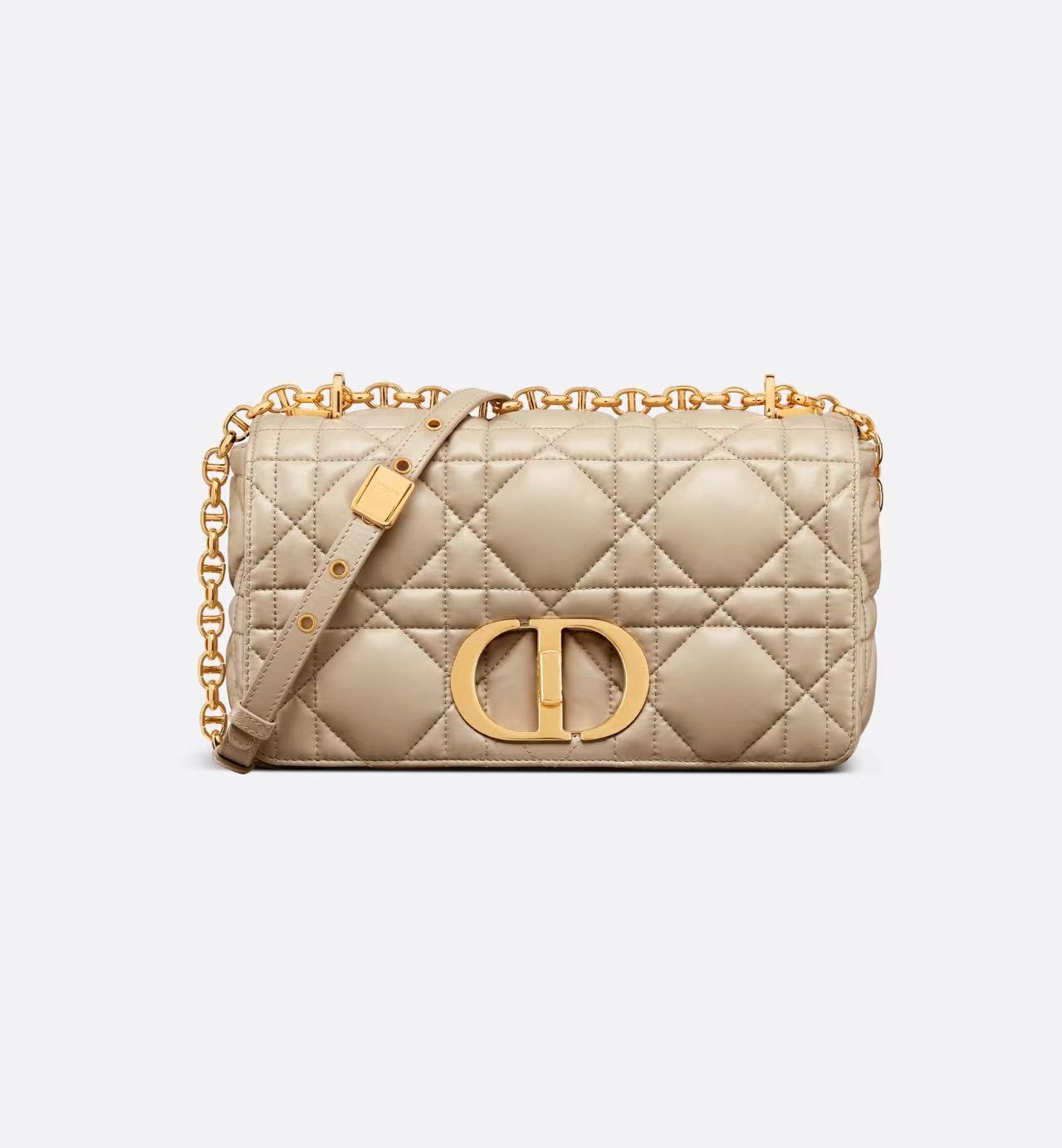 Sandy brown calfskin leather with quilted effect, oversized cannage pattern