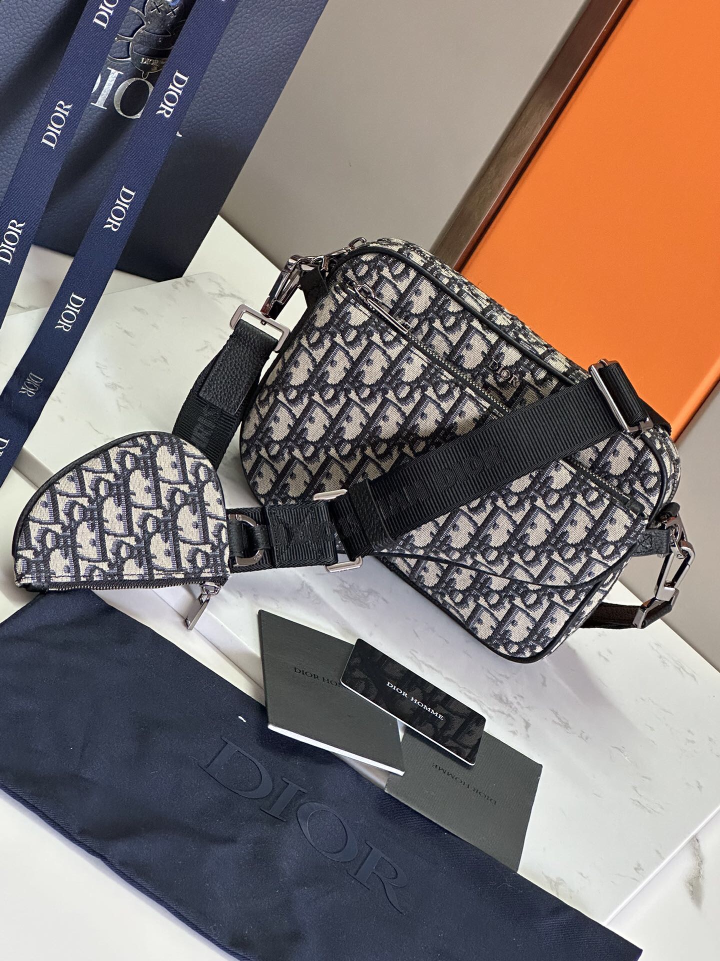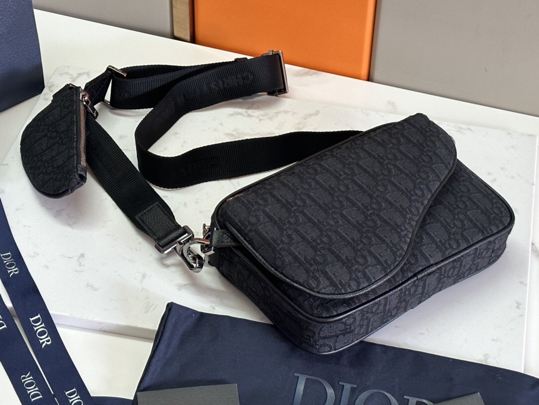 Dior Saddle Bag Trio Handbag Set, New Arrival in the Men's Collection, Reference: 93376, Black and Blue Fabric