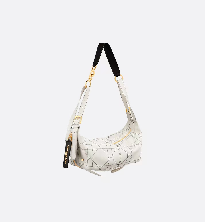 White cowhide leather with a flat oversized rattan check pattern and contrasting black quilted fabric.