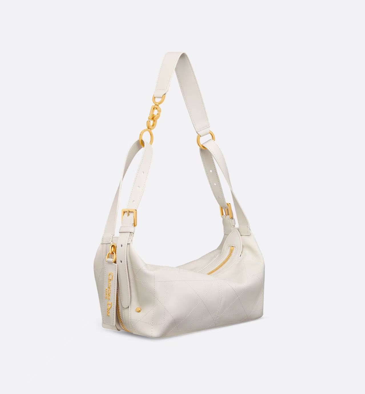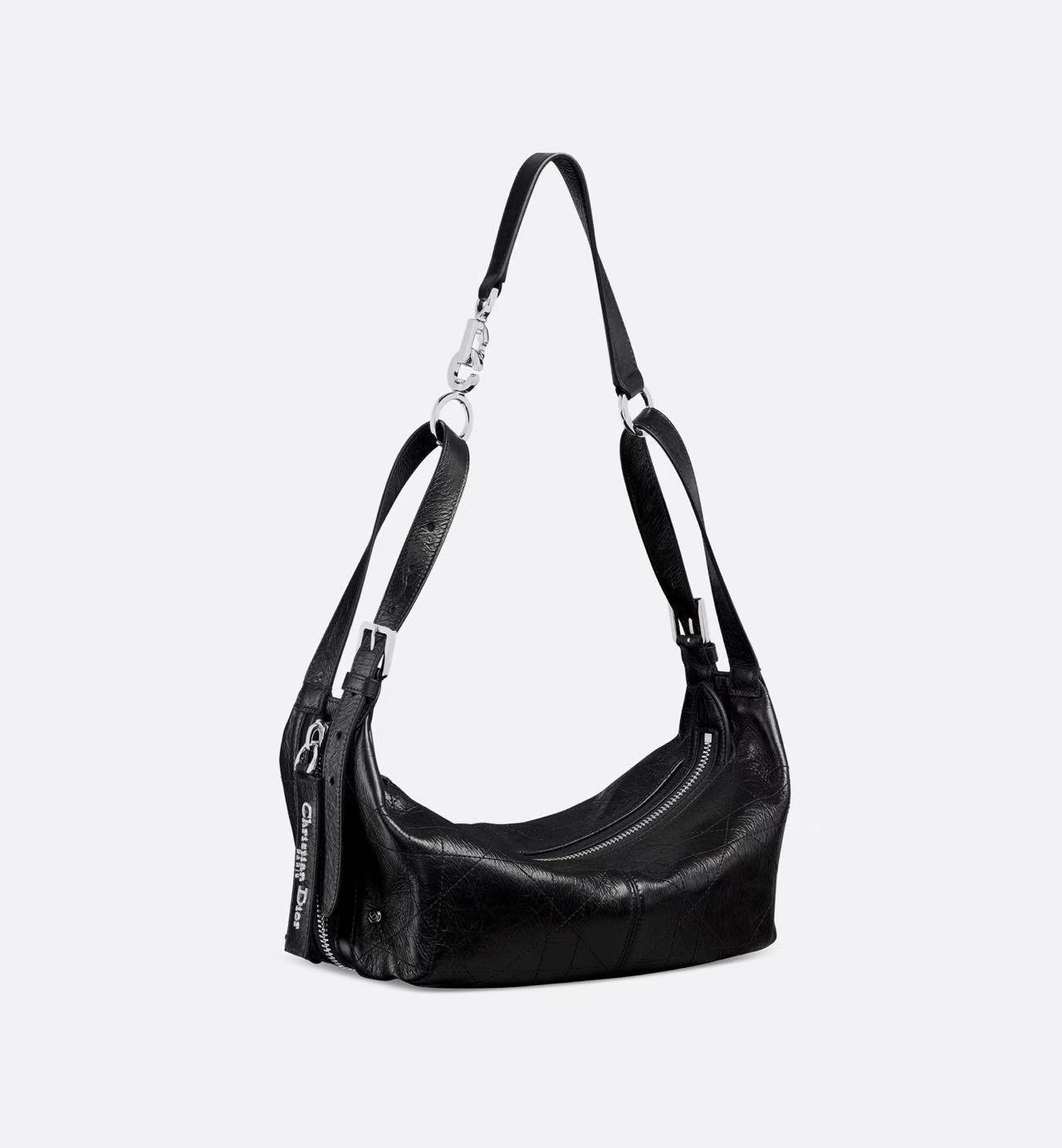 Black crinkled calfskin leather with flat oversized cannage pattern