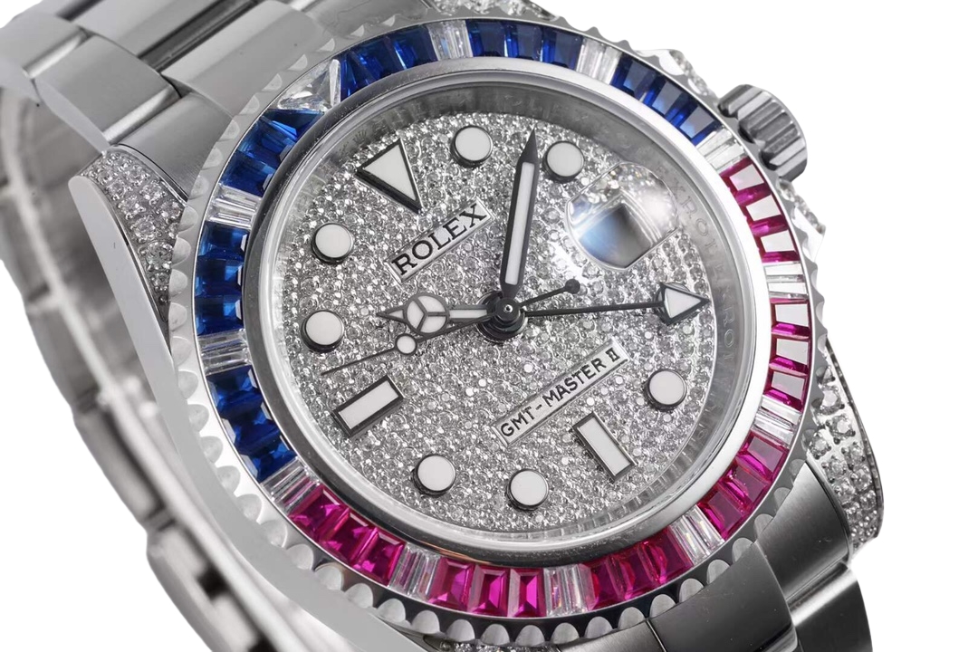 Rolex GMT-MASTER II 40mm Full Diamond Dial Blue Red Diamond Bezel Steel 116759-SARU