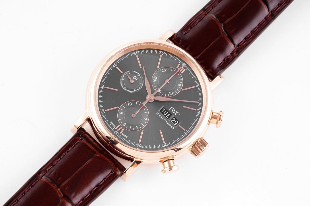 • IWC Portofino 42mm Grey Dial Rose Gold Bezel Brown Leather Strap IW391021