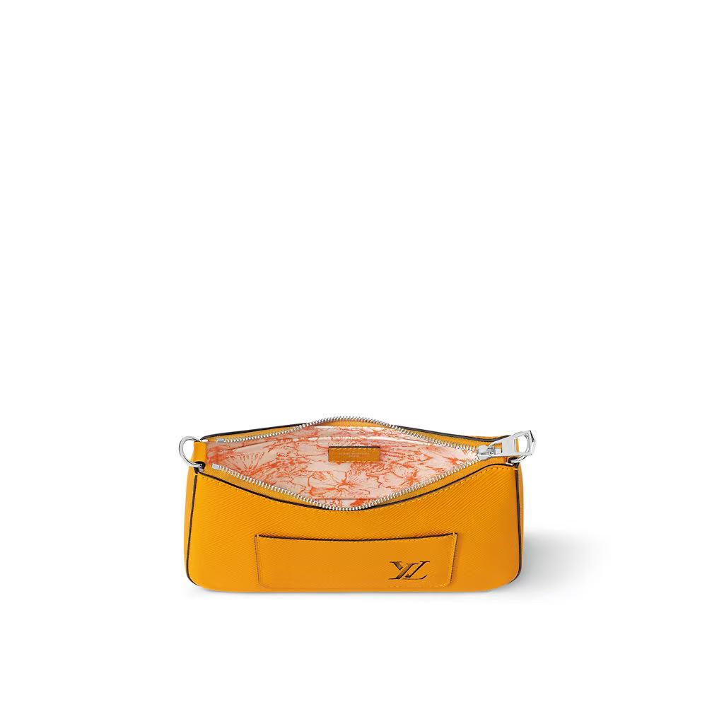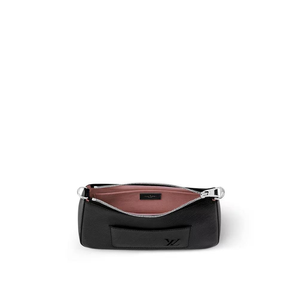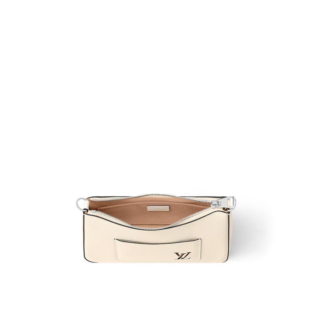 Detachable zipper pocket secures to the bag with a removable chain and hook closure