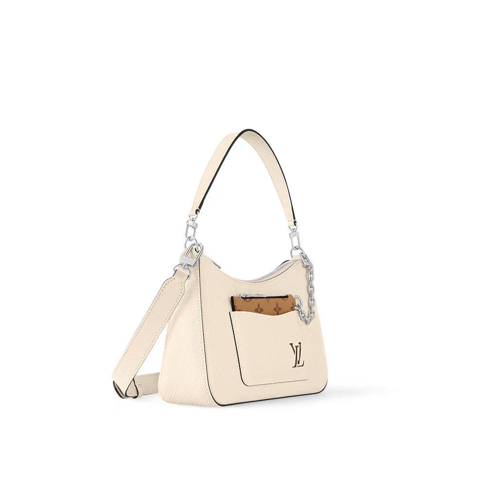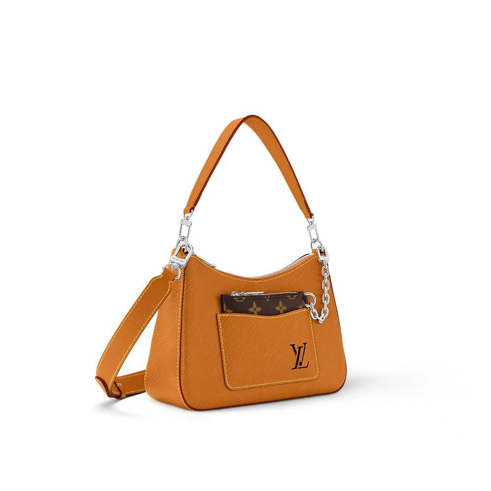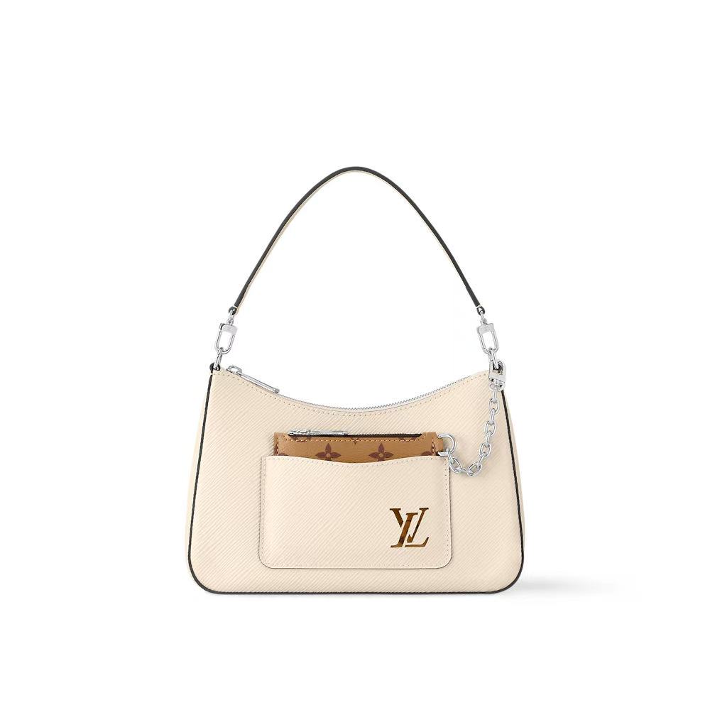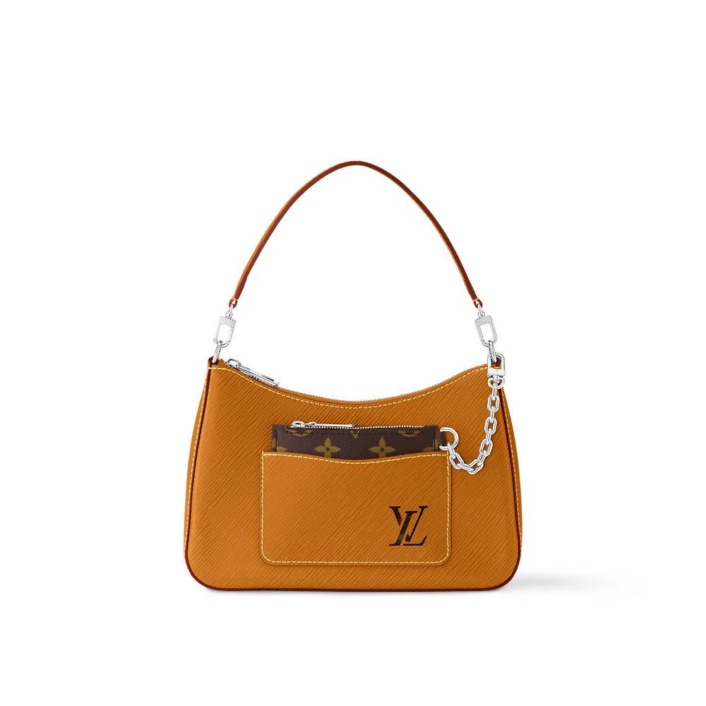 Detachable zipper pocket secures to the bag with a removable chain and hook closure