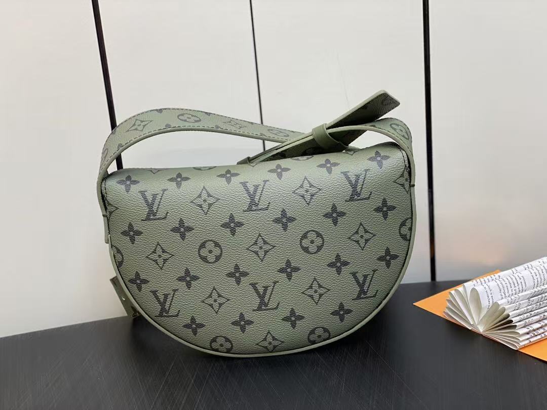 Louis Vuitton Moon Crossbody Bag M23838 GreenThe half-moon shape allows for easy crossbody carry, easily accommodating a phone, small wallet, and headphones. Dimensions: 24.5 x 16 x 4.5 cm (length x height x width)