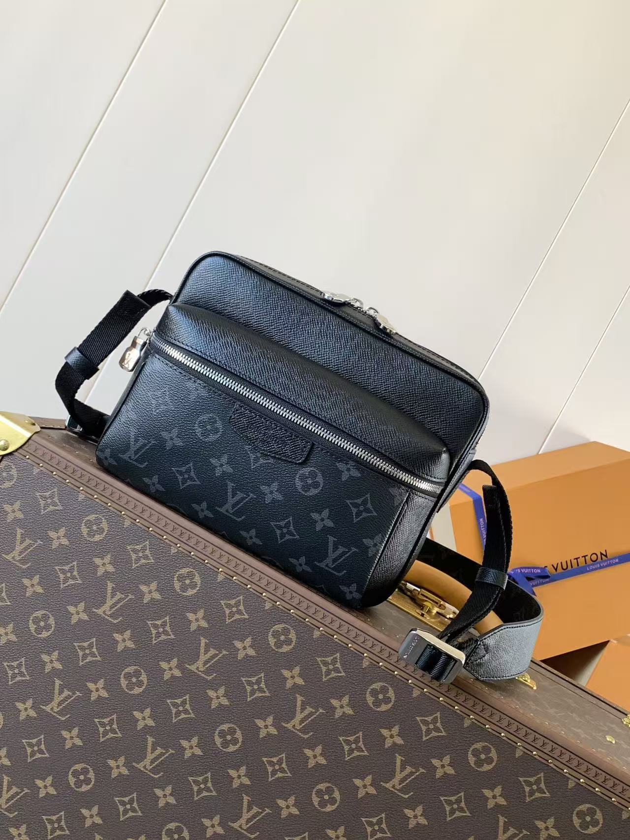 A fusion of Taïga leather and Monogram canvas welcomes Spring/Summer 2019, adding a harmonious touch to the bold design of the Outdoor messenger bag. The silver-tone zipper and hardware on the front add refined detailing, while the adjustable shoulder strap allows for easy carrying. Made of Taïga cowhide and Monogram Eclipse coated canvas, with cowhide trim, fabric lining, hardware, a center zippered compartment, a zippered front pocket, an interior patch pocket, and a non-detachable, adjustable shoulder strap! Model: M30233; Dimensions: 29.5 x 20 x 10.5 cm