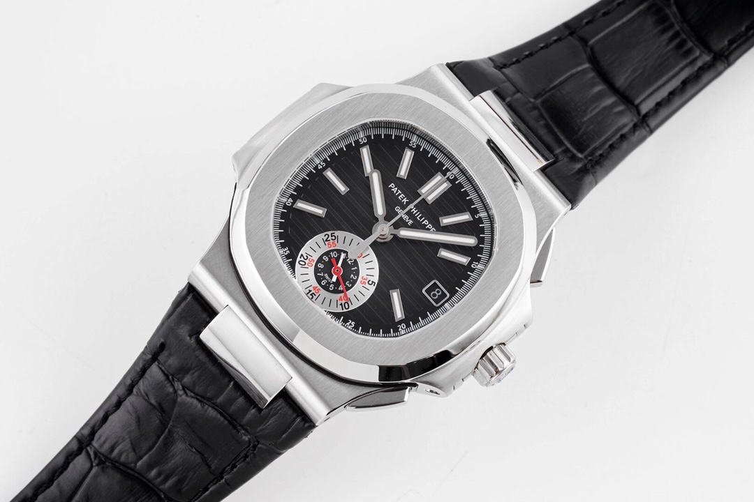 | Patek Philippe Nautilus 40.5mm Black Dial Steel Bezel Black Leather Complications 5980 | |