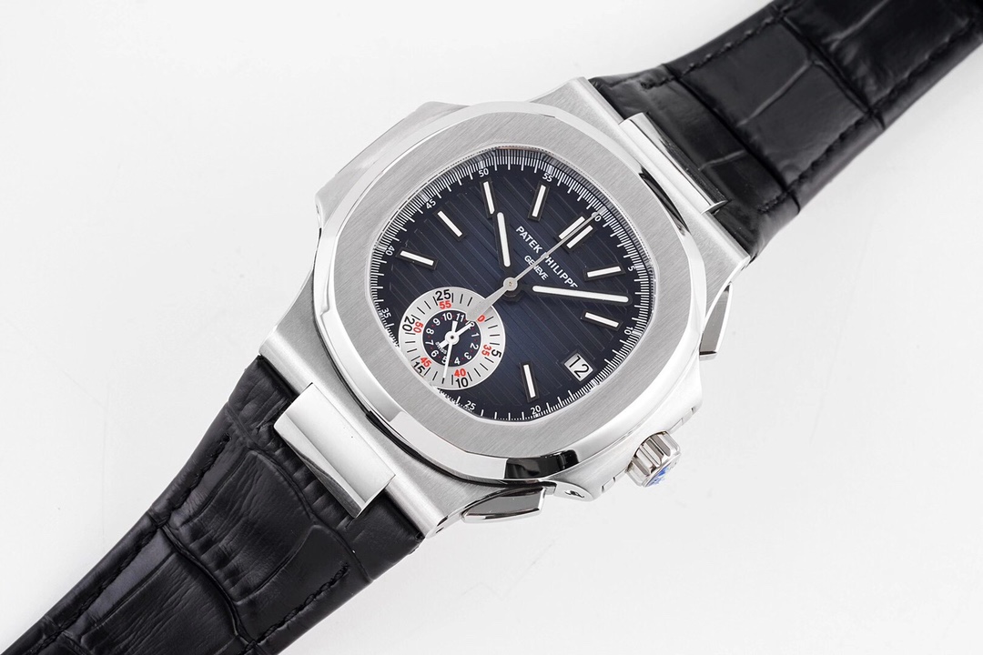 | Patek Philippe Nautilus 40.5mm Blue Dial Steel Bezel Black Leather Complications 5980 | |
