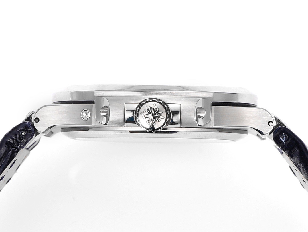 | Patek Philippe Nautilus 40mm Black Blue Dial Platinum Gen Bezel Blue Leather 5724G-001 | |
