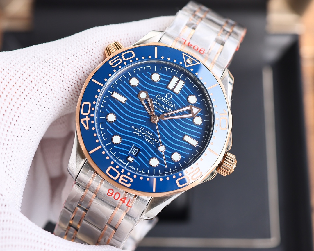 | Omega Seamaster 300M Diver 42mm Blue Dial Blue Bezel Rose Gold & Steel 210.20.42.20.03.002 | |