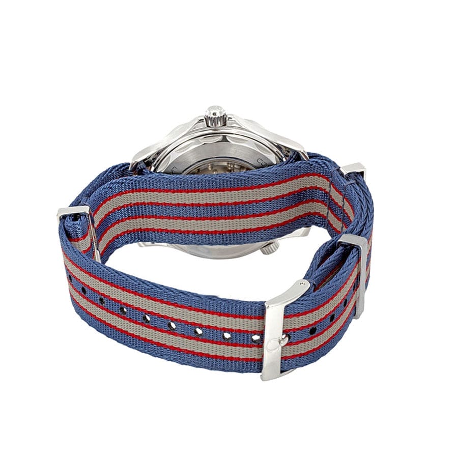 • Omega Seamaster Diver 300M 41mm White Dial Red Blue Steel Bezel Red Grey Blue Fabric 212.32.41.20.04.001