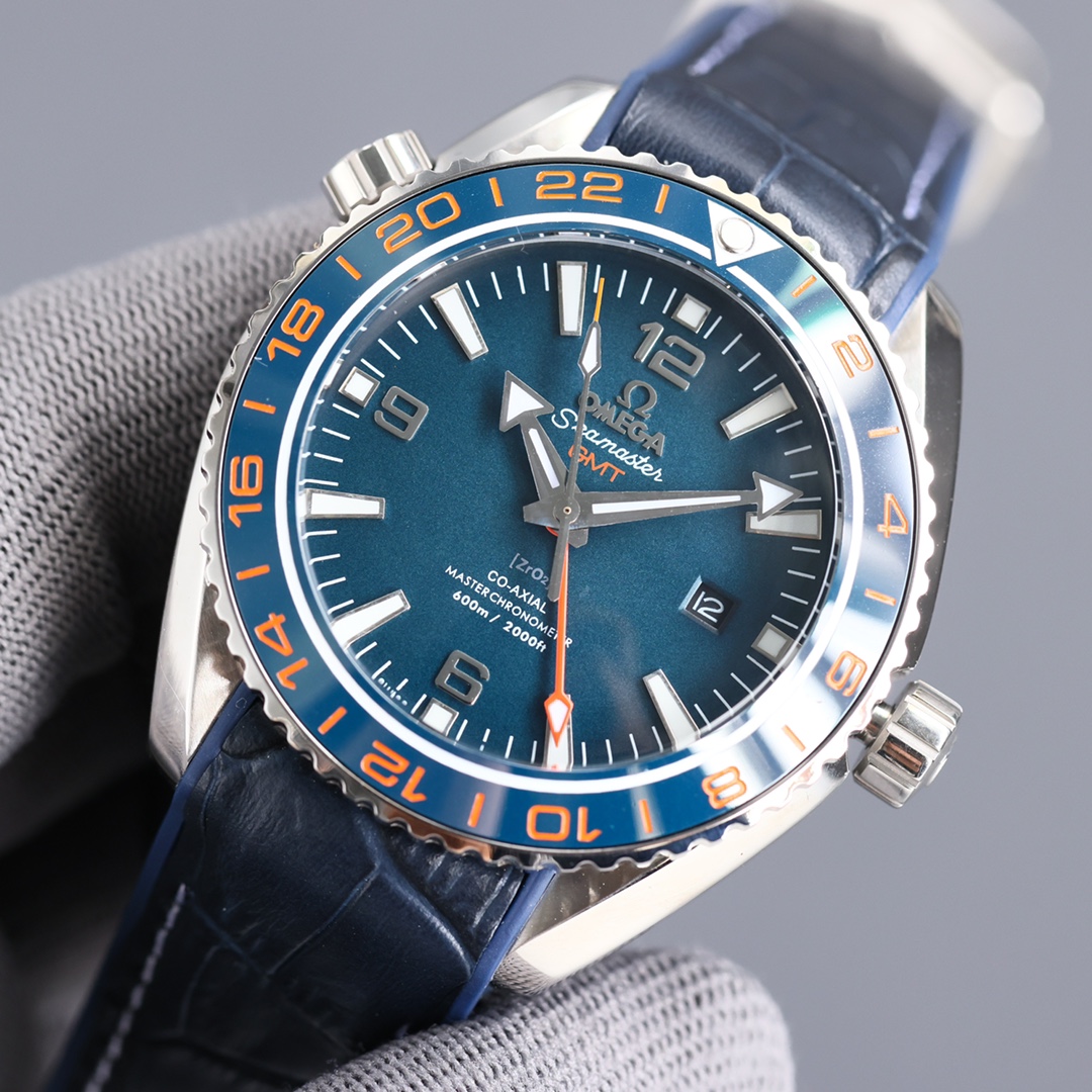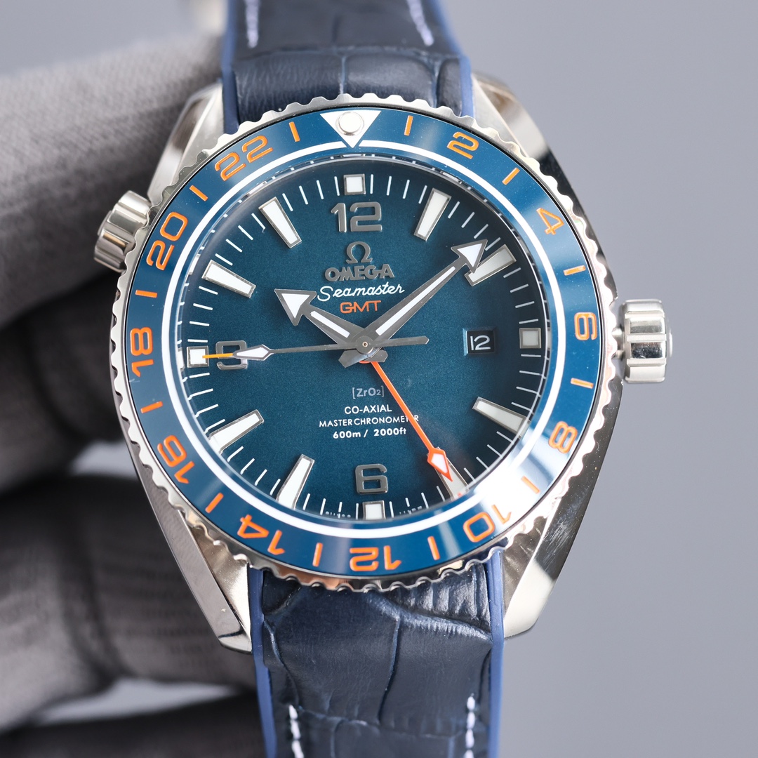 Omega Seamaster GMT 600M 43.5mm Blue Dial Blue Orange Bezel Rubber Leather Strep 232.32.44.22.03.001