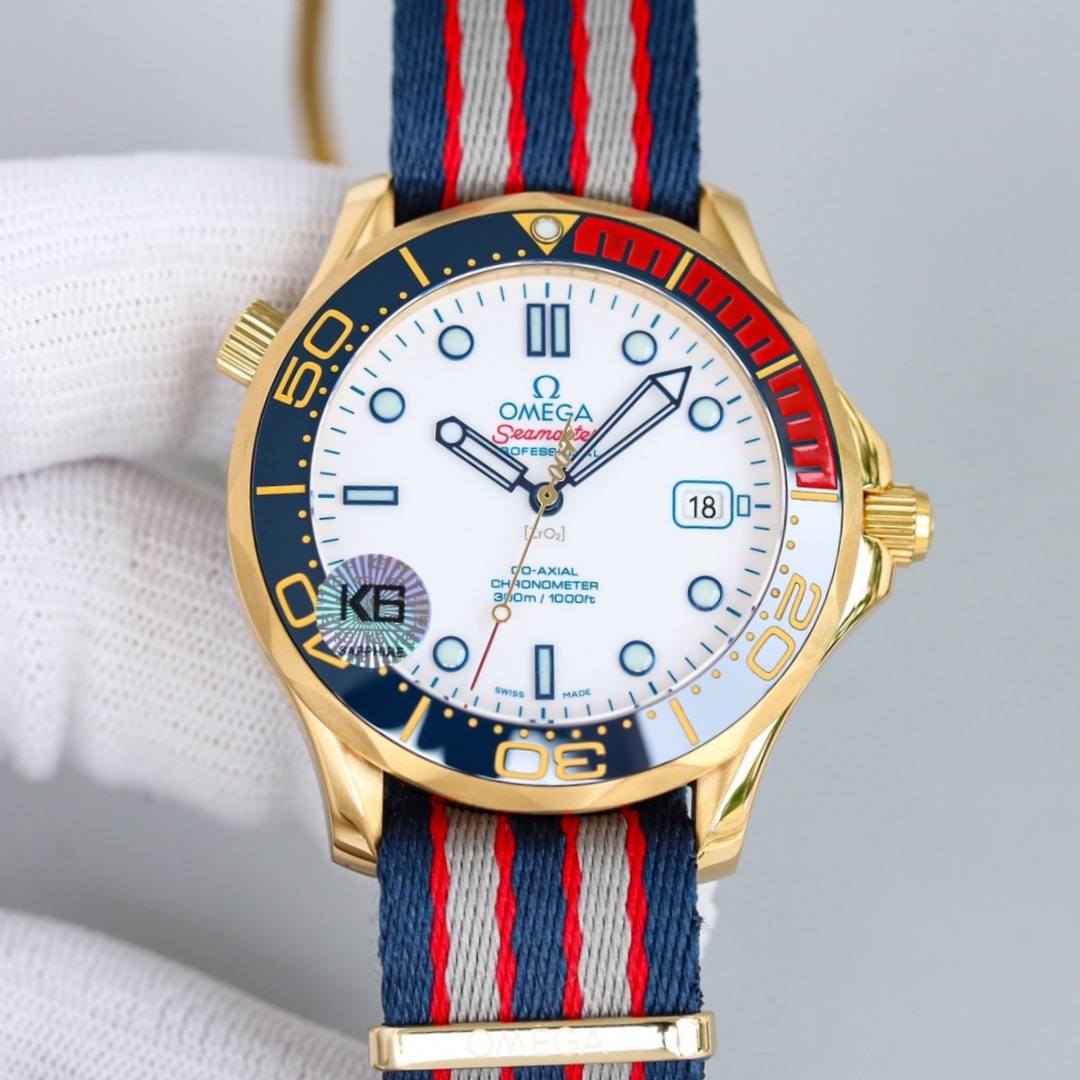 Omega Seamaster Diver 300M 41mm White Dial Red Blue Gold Bezel Red Grey Blue Fabric 212.62.41.20.04.001