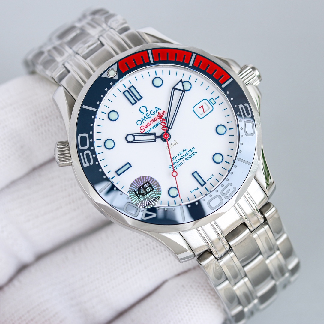 Omega Seamaster Diver 300M 41mm White Dial Red Blue Bezel Steel 212.32.41.20.04.001