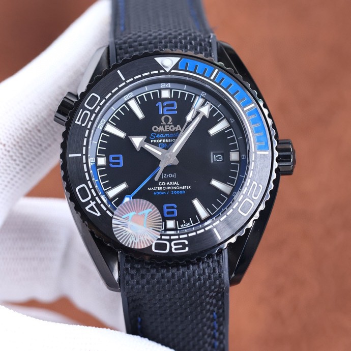 Omega Seamaster Planet Ocean 600m 45.5mm Black Blue Dial Black Blue Bezel Nylon Strep 215.92.46.22.01.002