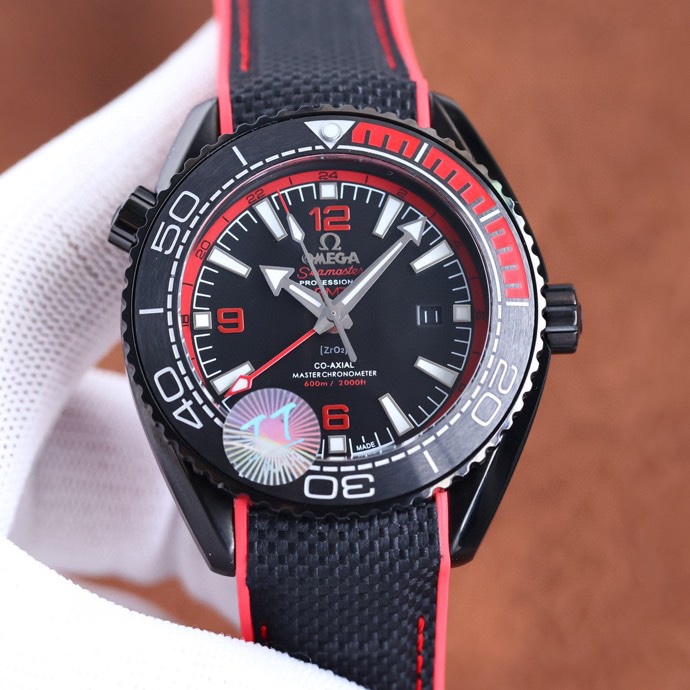 Omega Seamaster Planet Ocean 600m 45.5mm Black Red Dial Black Red Bezel Nylon Strep 215.92.46.22.01.003