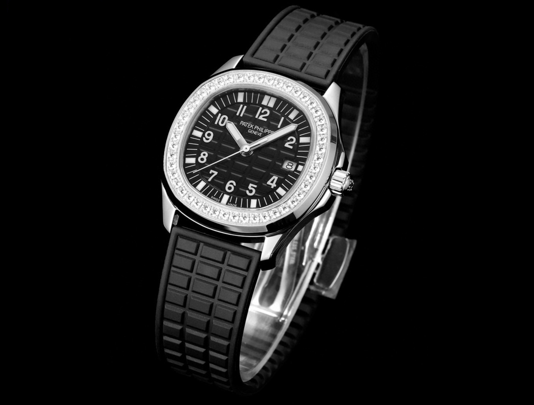 | Patek Philippe Aquanaut 35.6mm Black Dial Steel Diamond Bezel Black Rubber Strap 5067A-001 Woman Ladies | |