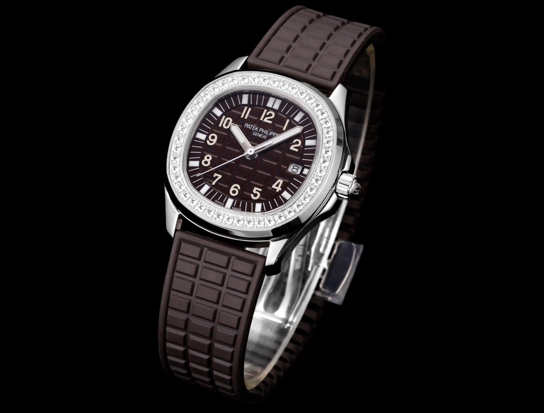 | Patek Philippe Aquanaut 35.6mm Brown Dial Steel Diamond Bezel Brown Rubber Strap 5067A-023 Woman Ladies | |