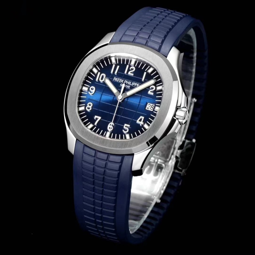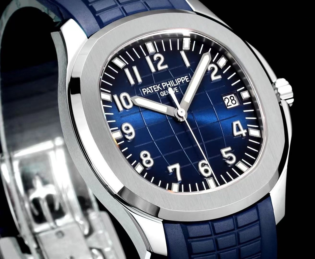 | Patek Philippe Aquanaut 42.2mm Blue Dial Steel Bezel Blue Rubber Strap 5168G-001 | |