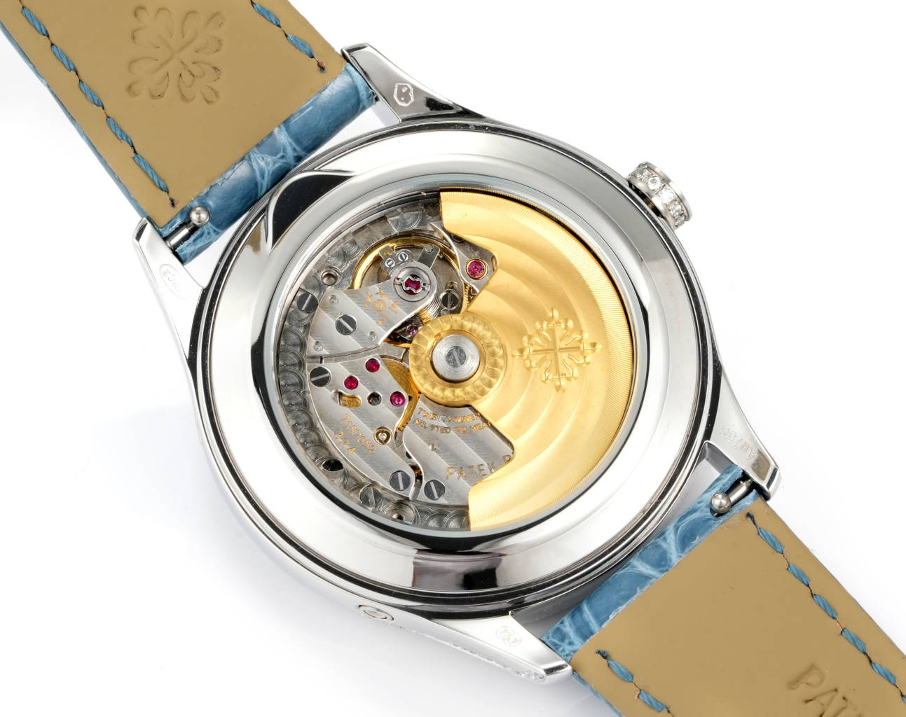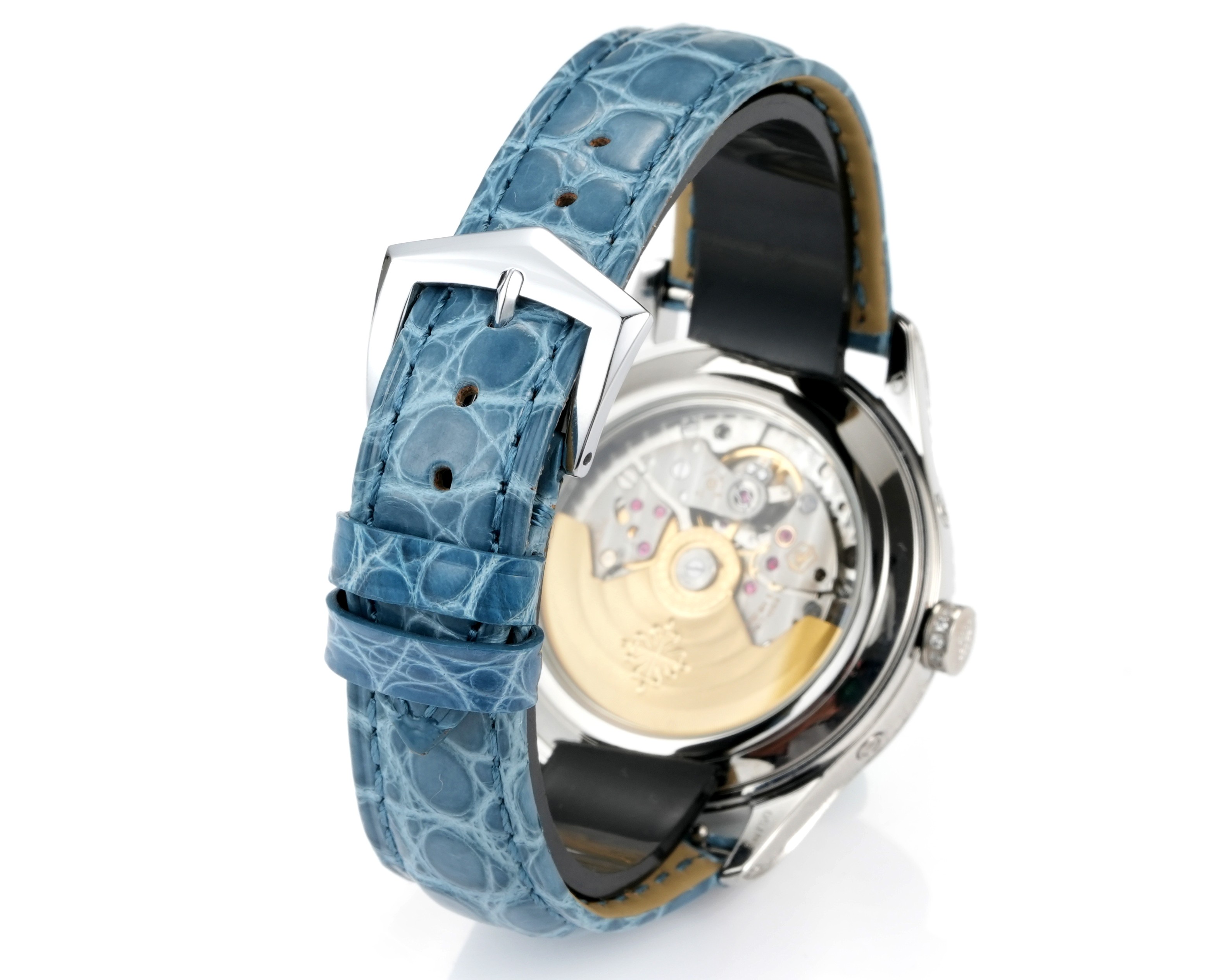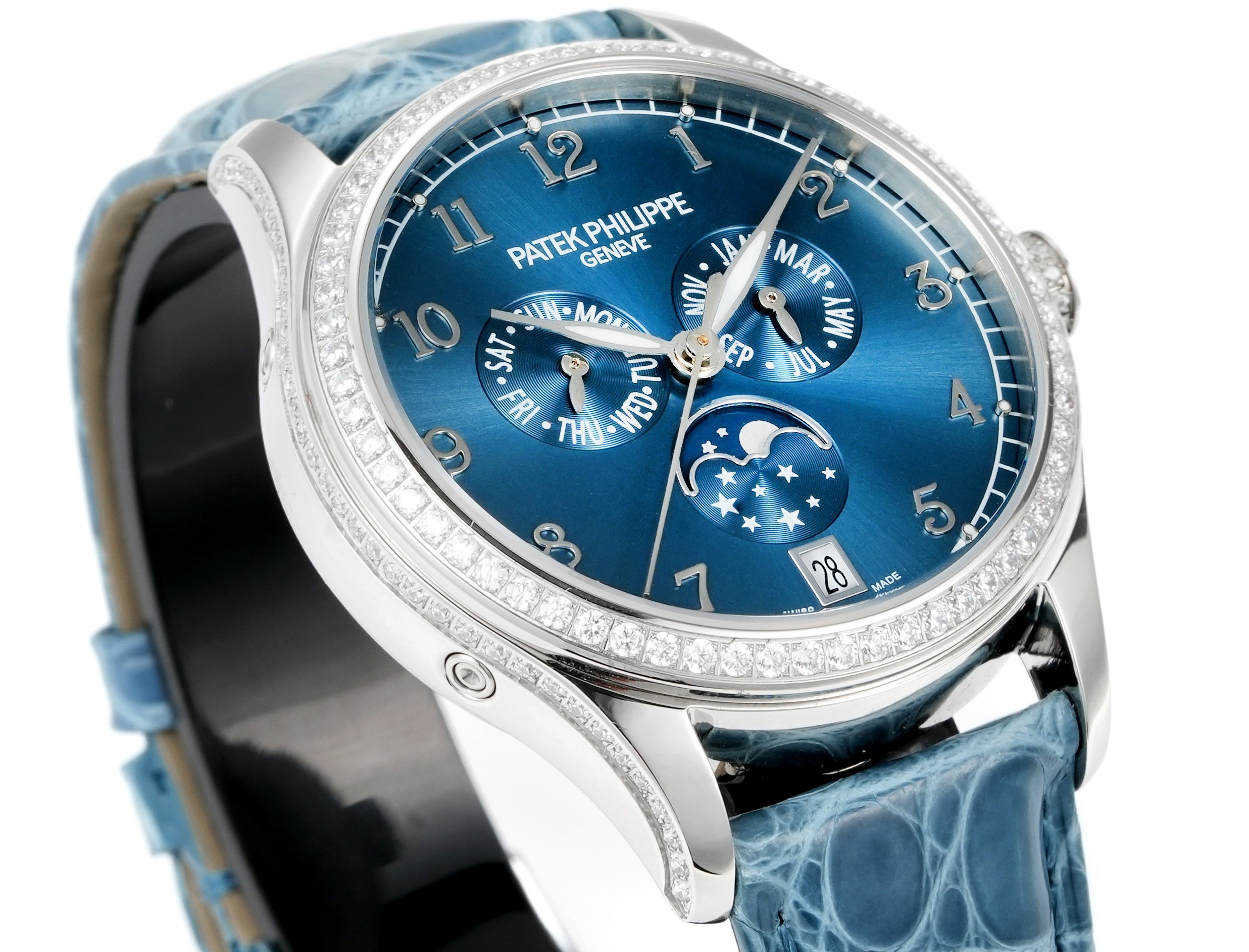 | Patek Philippe Complications 38mm Blue Dial Steel Diamond Bezel Blue Leather Strap 4947G-001 Woman Ladies | |