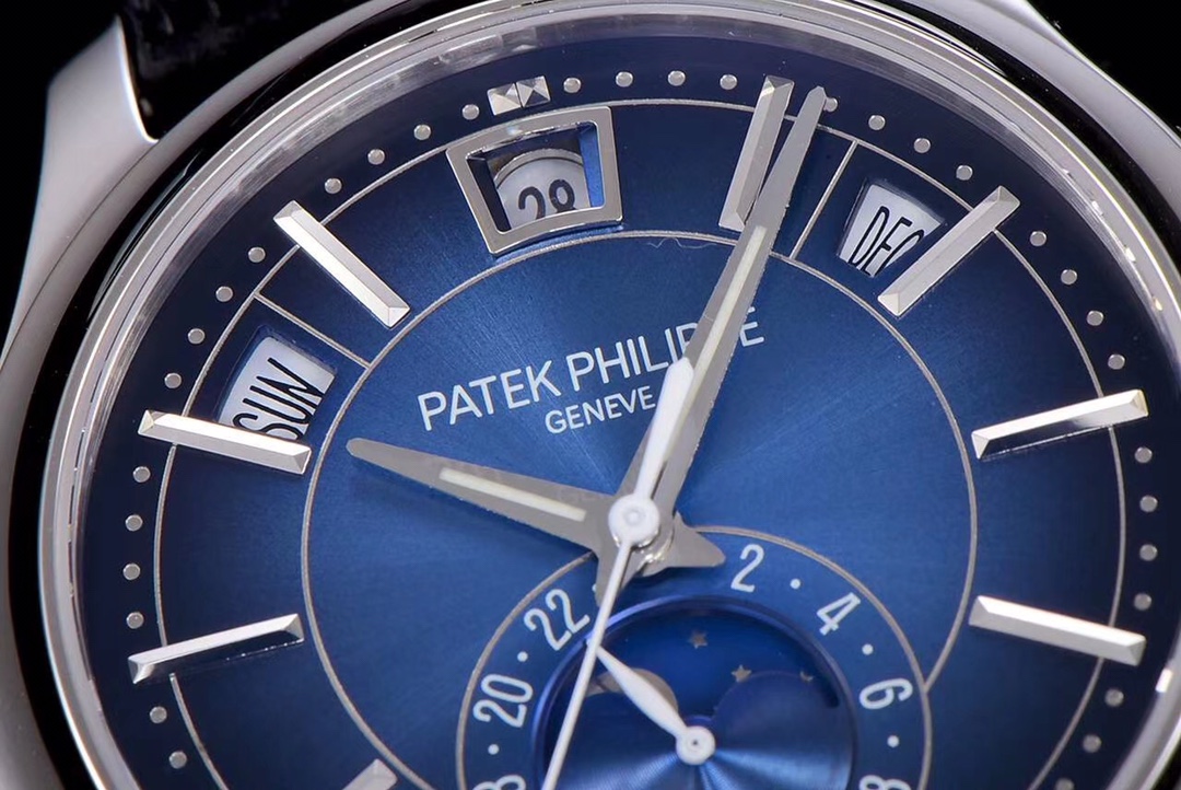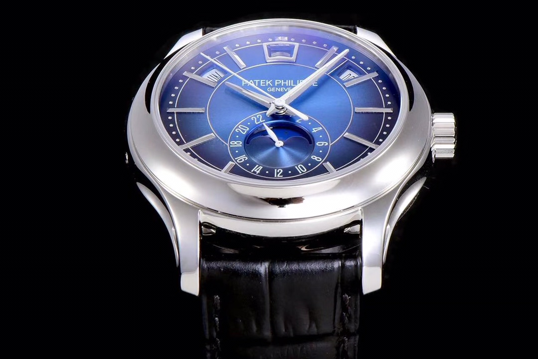 | Patek Philippe Complications 40mm Blue Dial Steel Bezel Black Leather Strap 5205G-013 | |