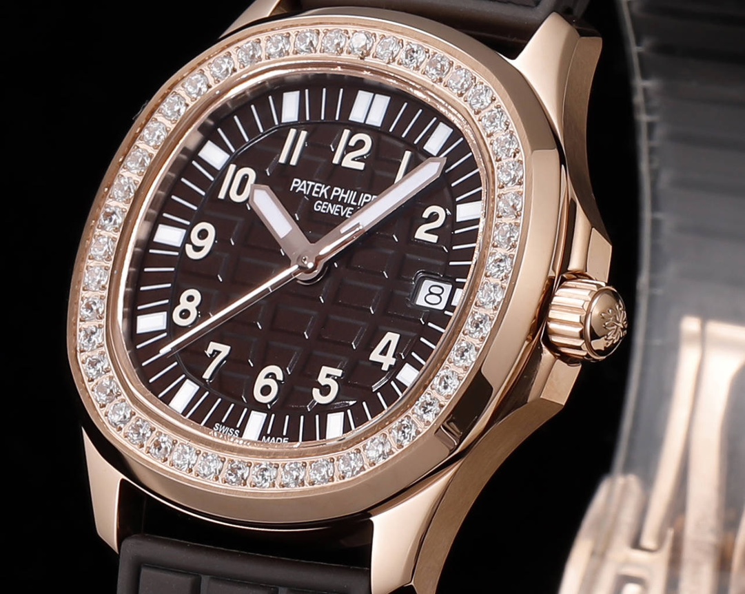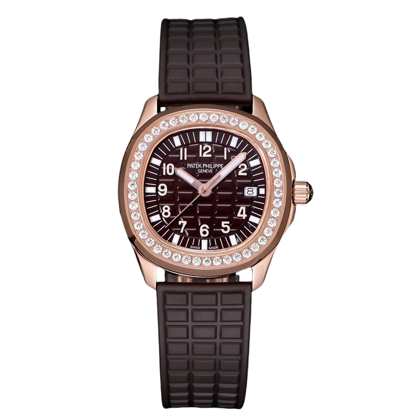 Patek Philippe Aquanaut 35.6mm Brown Dial Rose Gold Diamond Bezel Brown Rubber Strap 5068R-001 Woman Ladies