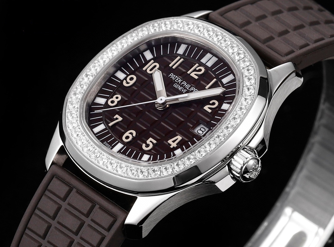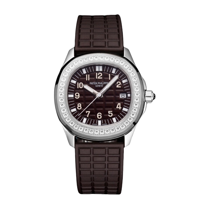 Patek Philippe Aquanaut 35.6mm Brown Dial Steel Diamond Bezel Brown Rubber Strap 5067A-023 Woman Ladies