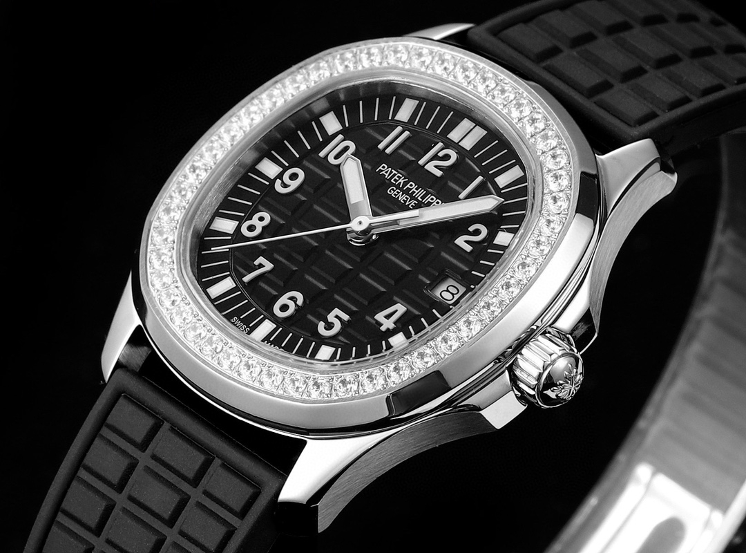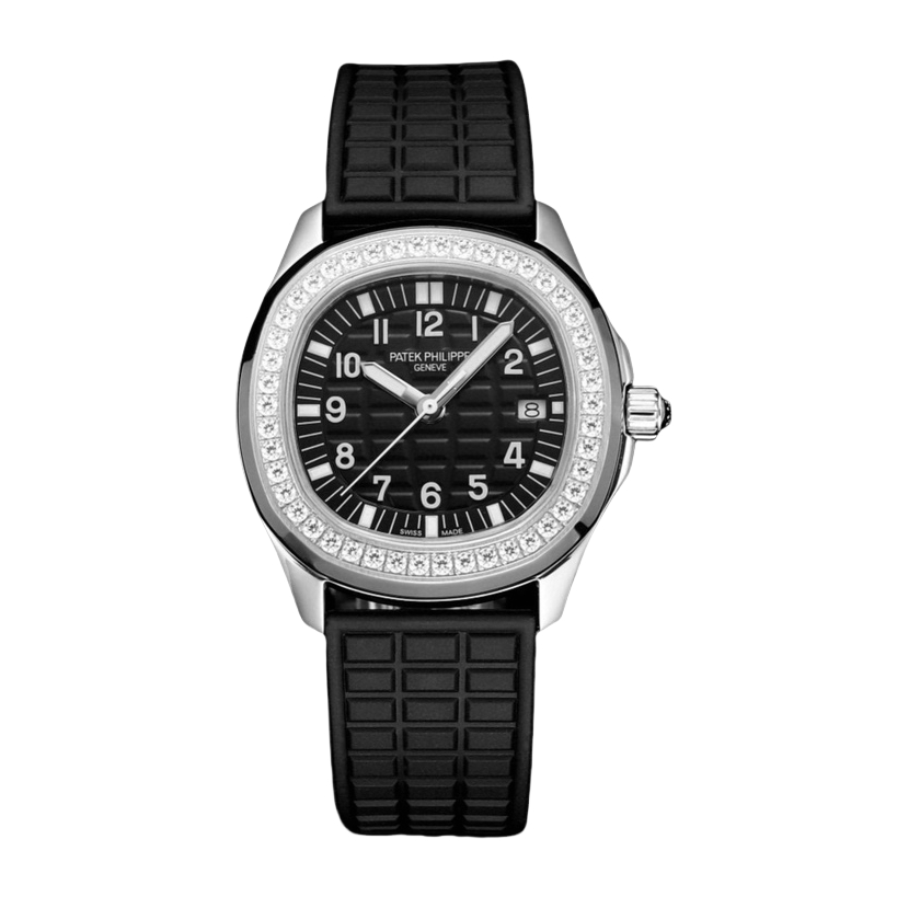 Patek Philippe Aquanaut 35.6mm Black Dial Steel Diamond Bezel Black Rubber Strap 5067A-001 Woman Ladies